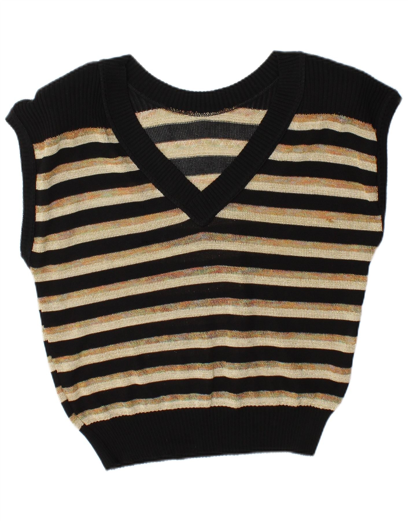 VINTAGE Chaleco de mujer Camiseta sin mangas Reino Unido 16 Algodón de rayas negras grandes