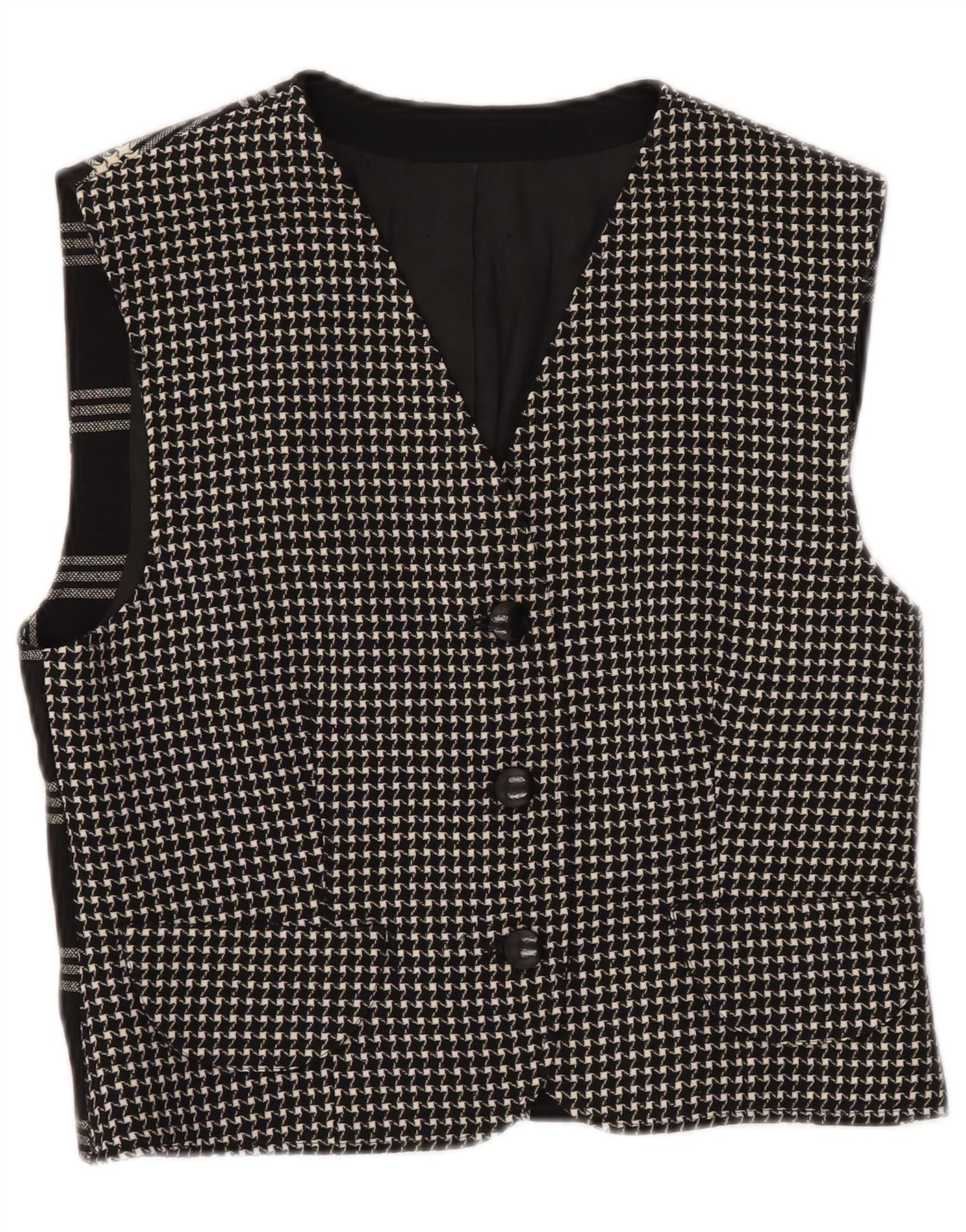 VINTAGE Chaleco de Mujer Reino Unido 12 Cheque Negro Medio