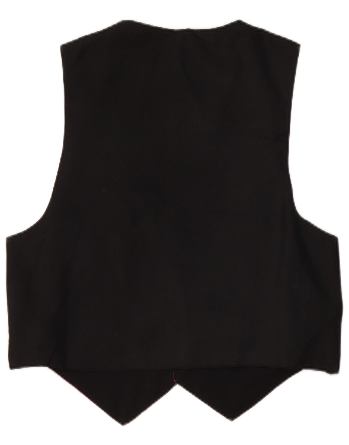 VINTAGE Chaleco de Mujer Reino Unido 14 Poliéster Floral Negro Medio