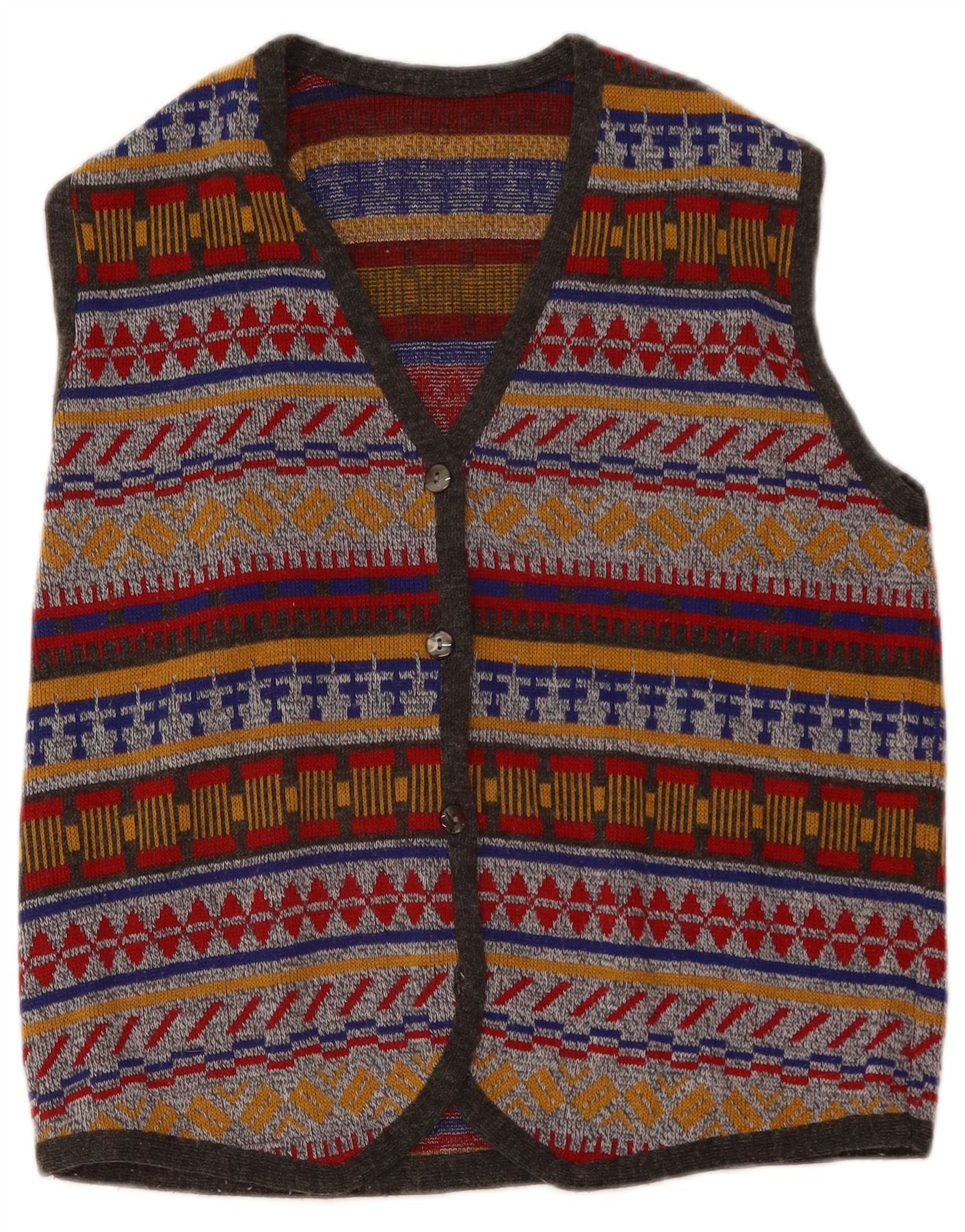VINTAGE Chaleco de Mujer Reino Unido 16 Grande Multicolor Fair Isle
