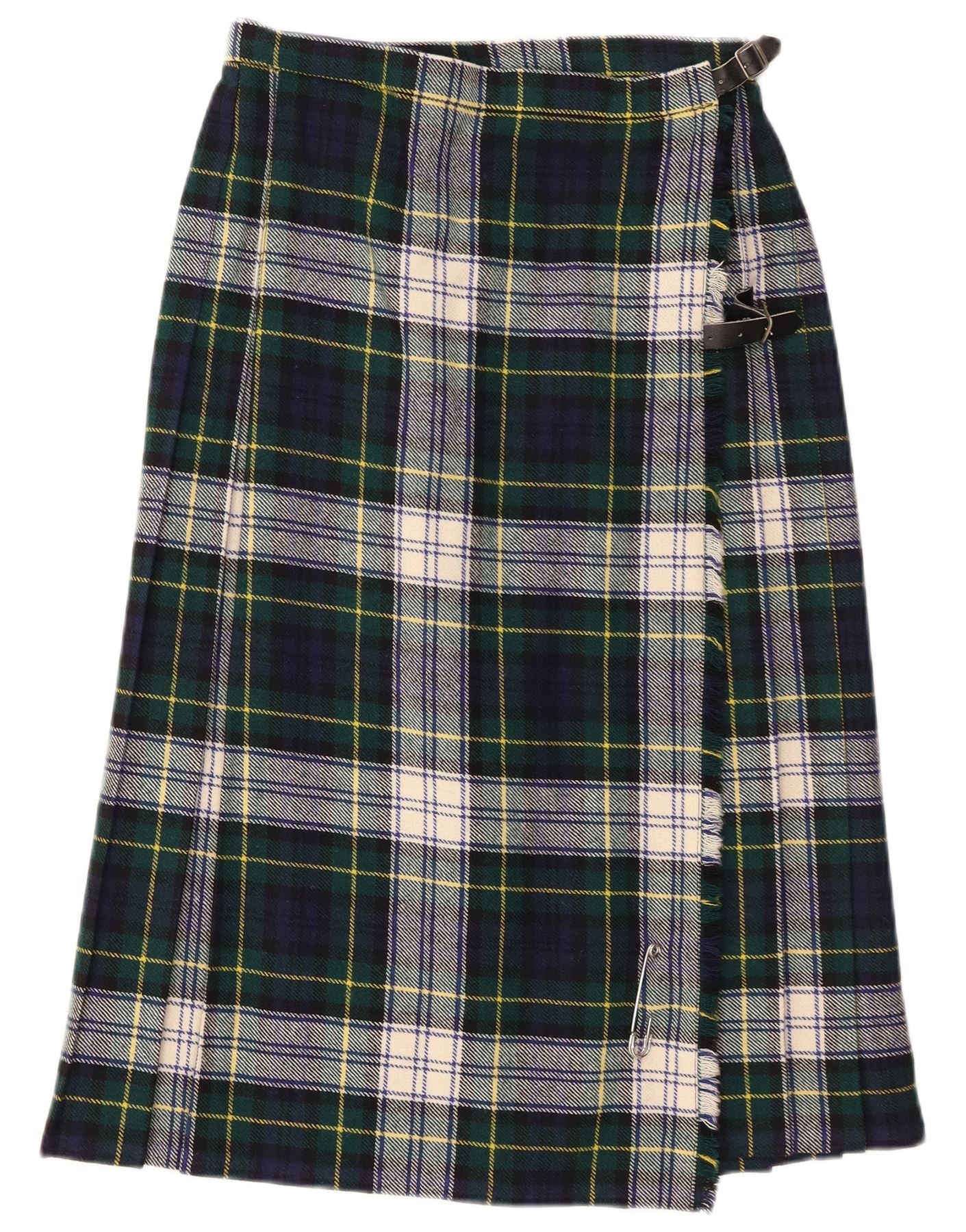 - Descripción de IA: Esta falda escocesa de tartán vintage para mujer está confeccionada con pura lana virgen y ofrece una rica textura tejida. Presenta un patrón clásico de cuadros verde, azul marino y blanco. La cintura alta y el diseño plisado crean una silueta tradicional. Un ajuste envolvente con cierre de hebilla garantiza un estilo seguro y auténtico. Esta falda midi encarna la elegancia británica atemporal.