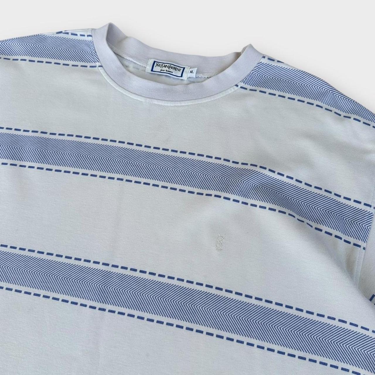 Camiseta vintage de los años 90 Yves Saint Laurent con estampado de rayas azules y blancas y logotipo bordado en el pecho