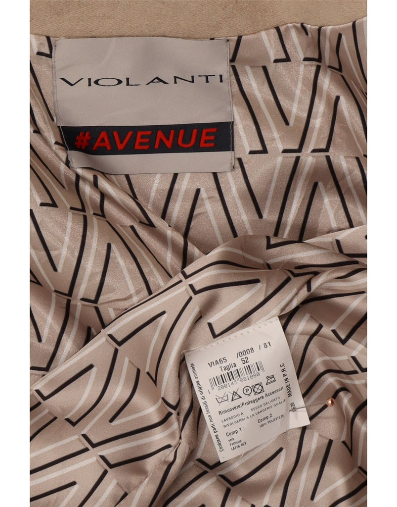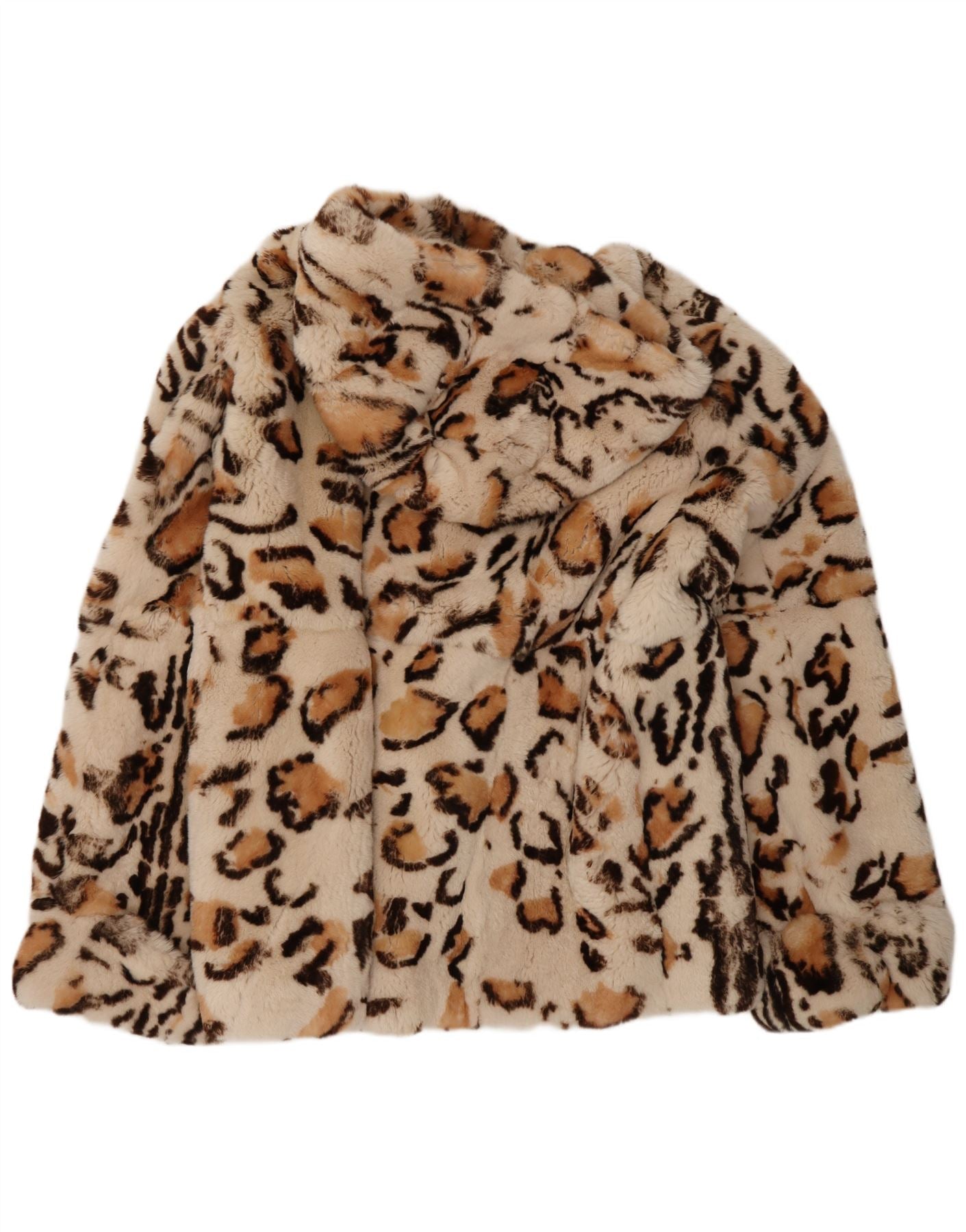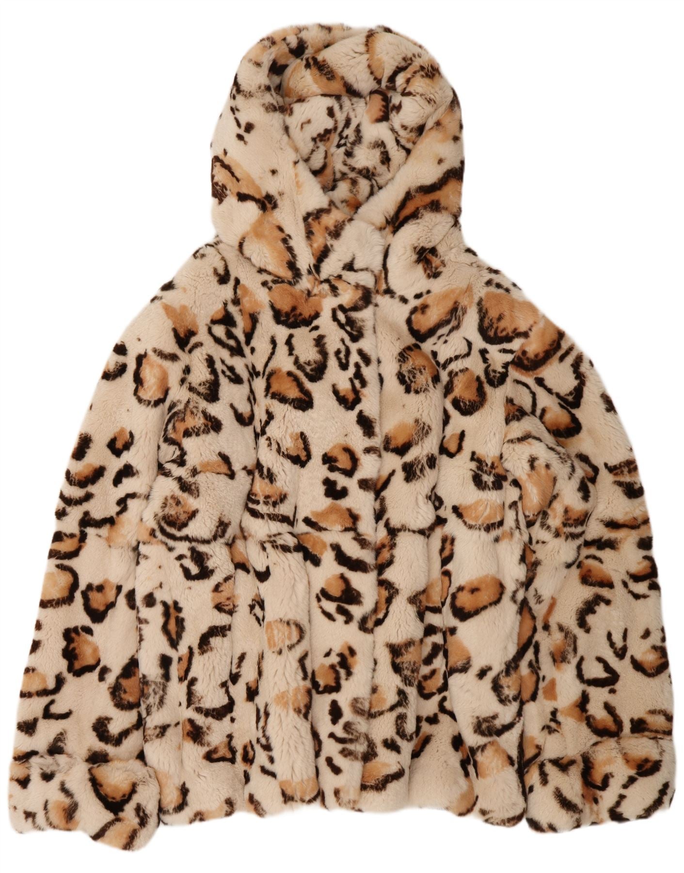 VIOLANTI Womens Hooded Faux Fur Jacket IT 52 2XL Beige Animal Print