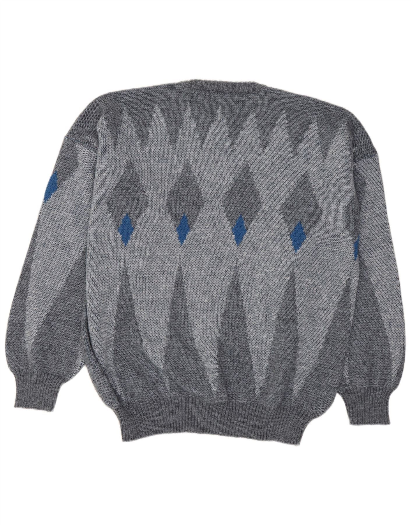 VOGUE Jersey de cuello redondo para hombre suéter grande gris Argyle/lana de diamante