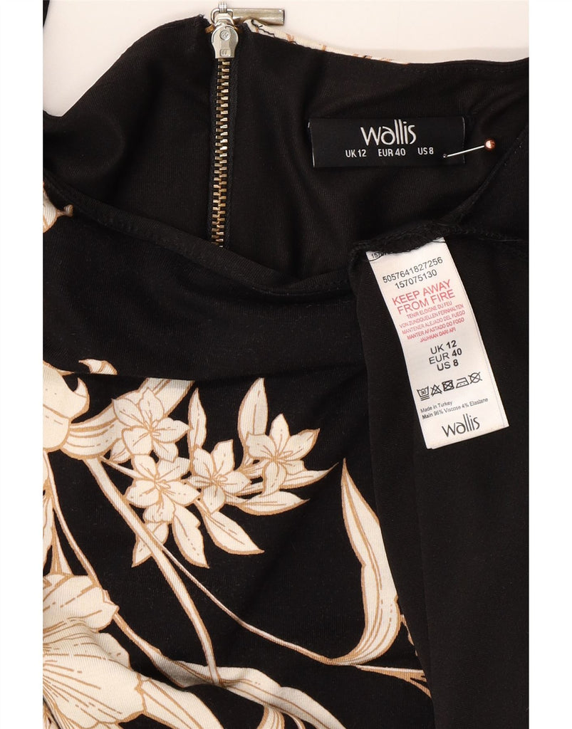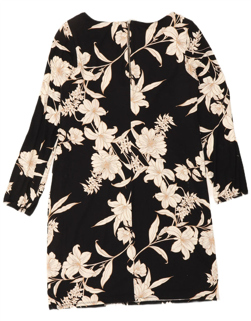 WALLIS Womens Long Sleeve Shift Dress UK 12 Medium Black Floral Viscose