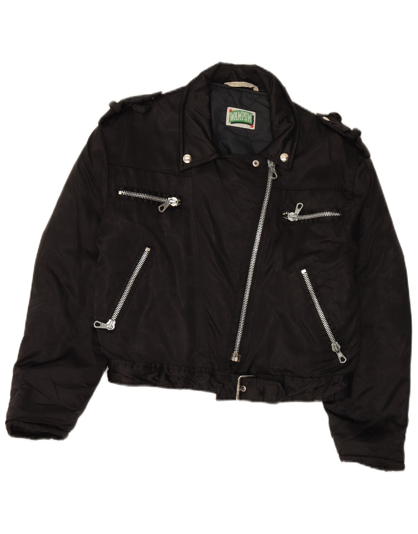 WAMPUM Chaqueta motera extragrande para mujer UK 10 Small Black Nylon