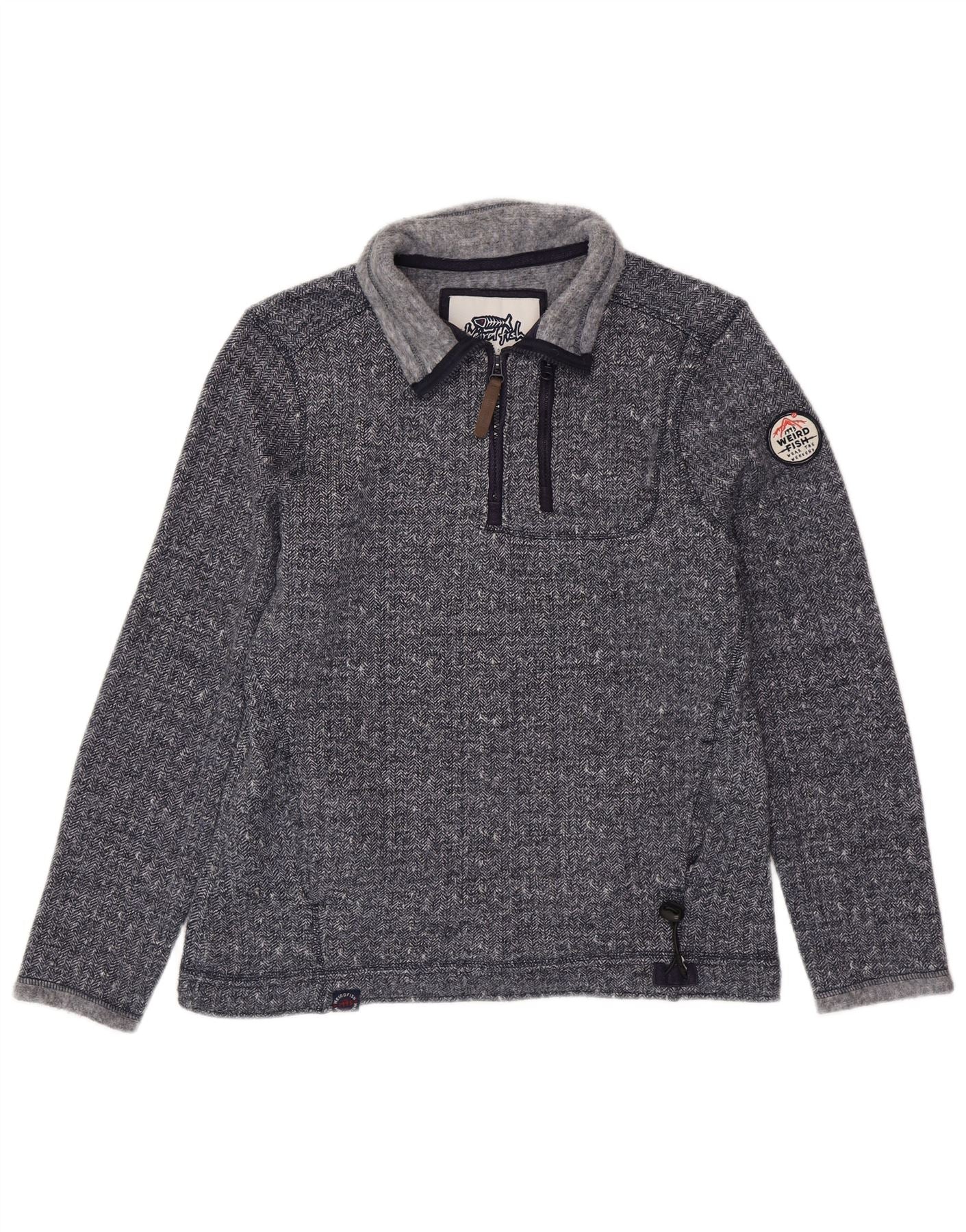 WEIRD FISH Sudadera con Cuello y Cremallera para Hombre Jersey Pequeño Azul Marino Espiga