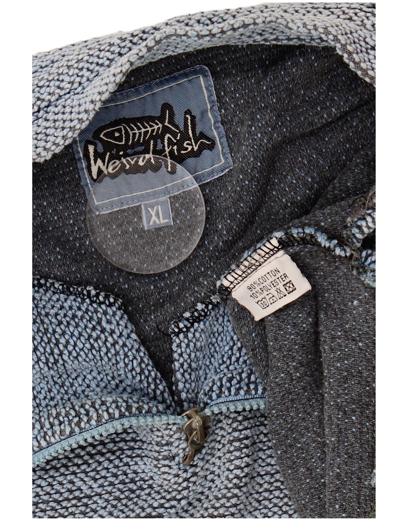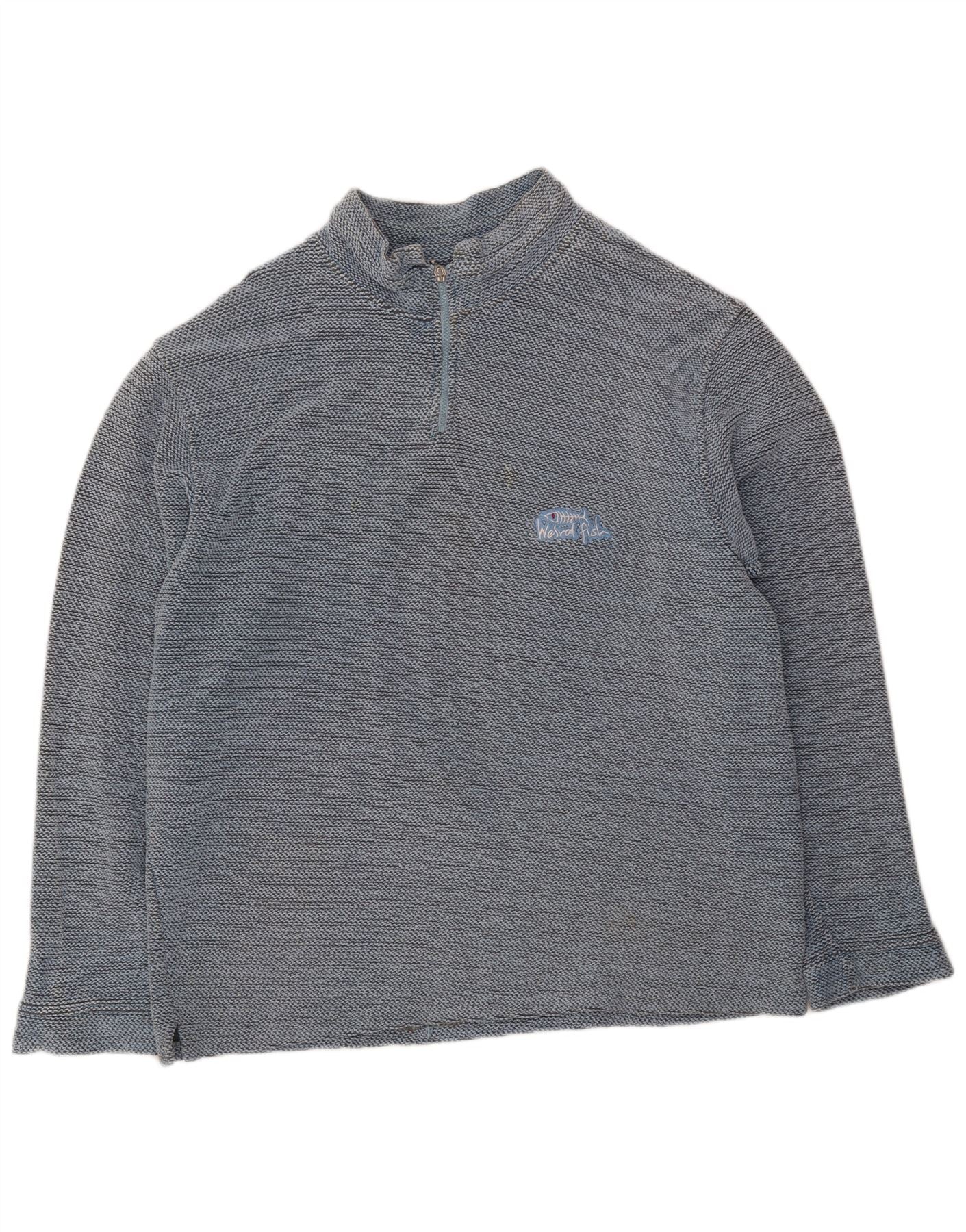 WEIRD FISH Mens Zip Neck Sweatshirt Jumper XL Blue Flecked Cotton