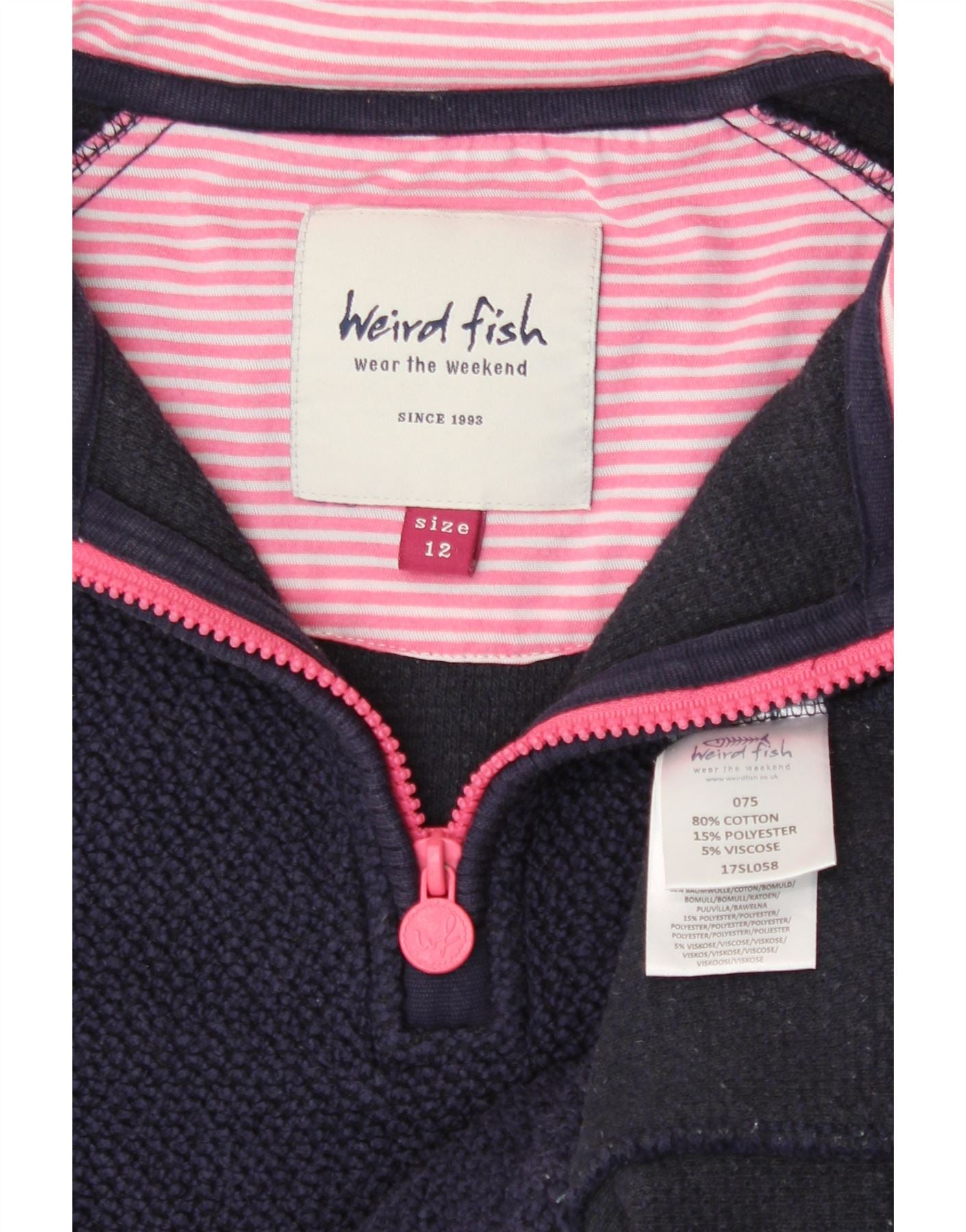 Home > De las mujeres > Ropa Depop > WEIRD FISH Sudadera con Cuello y Cremallera para Mujer UK 12 Medium Azul Marino Algodón