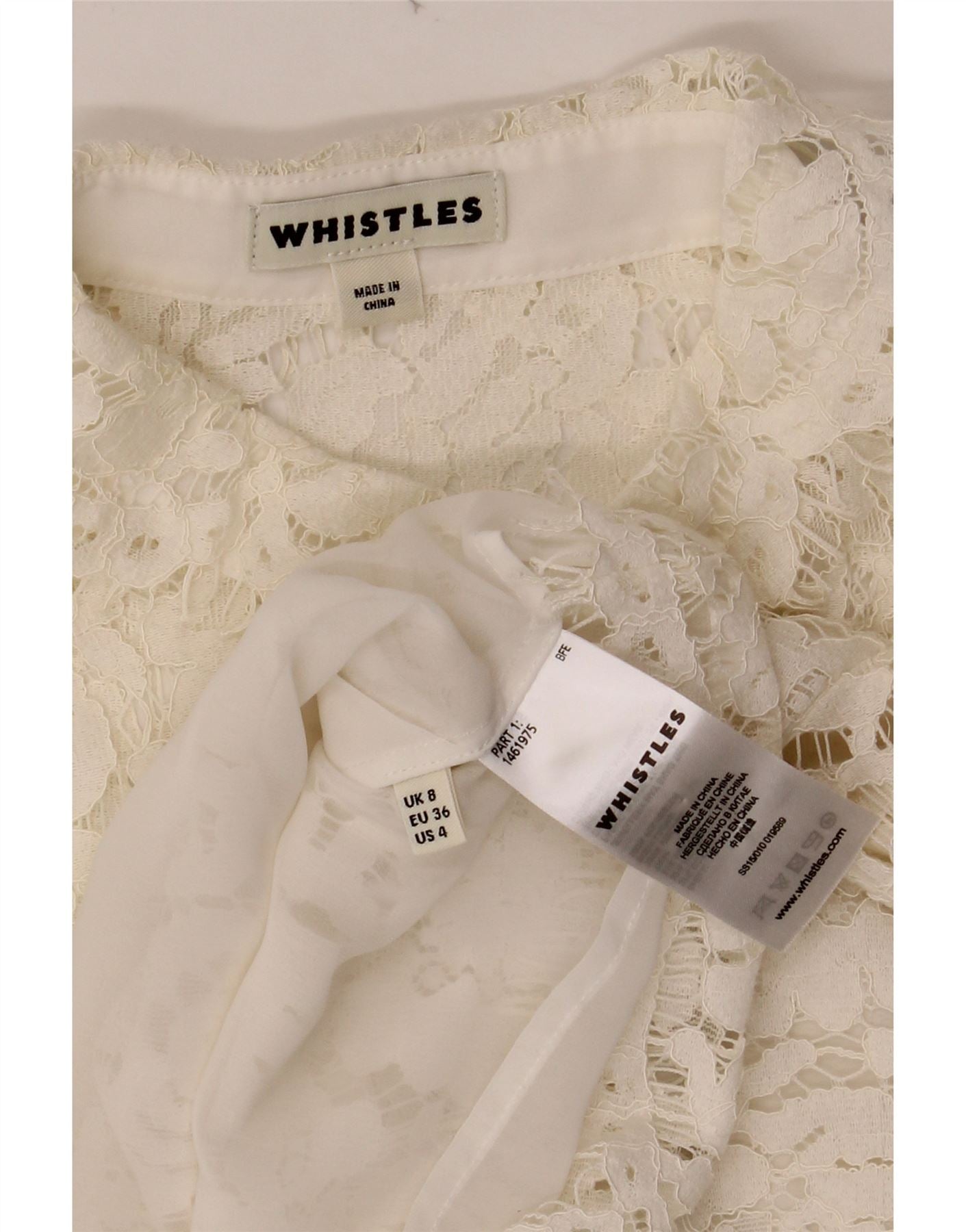 WHISTLES Womens Crop Shirt Blouse UK 8 Small Off White Floral Cotton