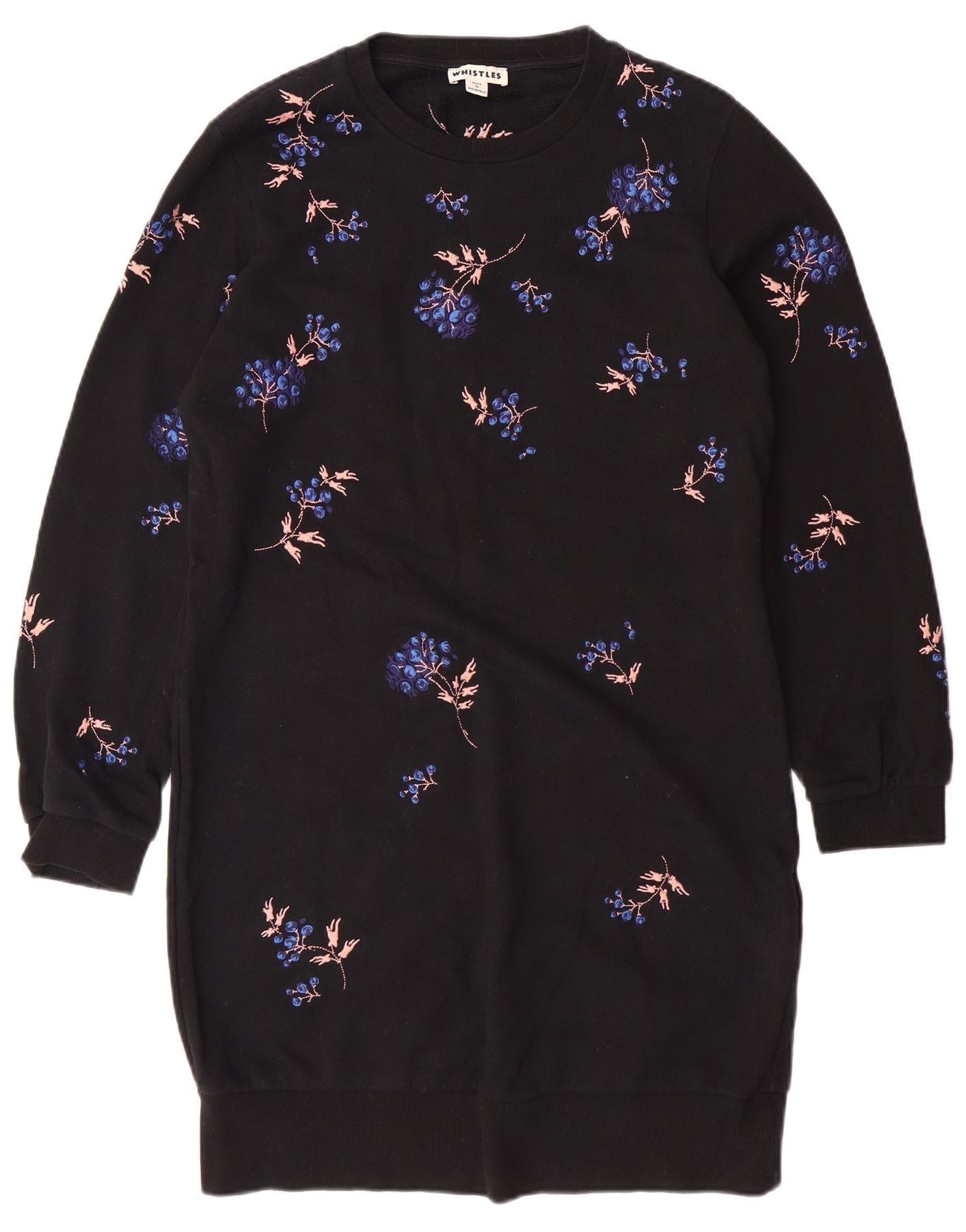 WHISTLES Vestido tipo sudadera para mujer UK 10 Small Black Floral Cotton