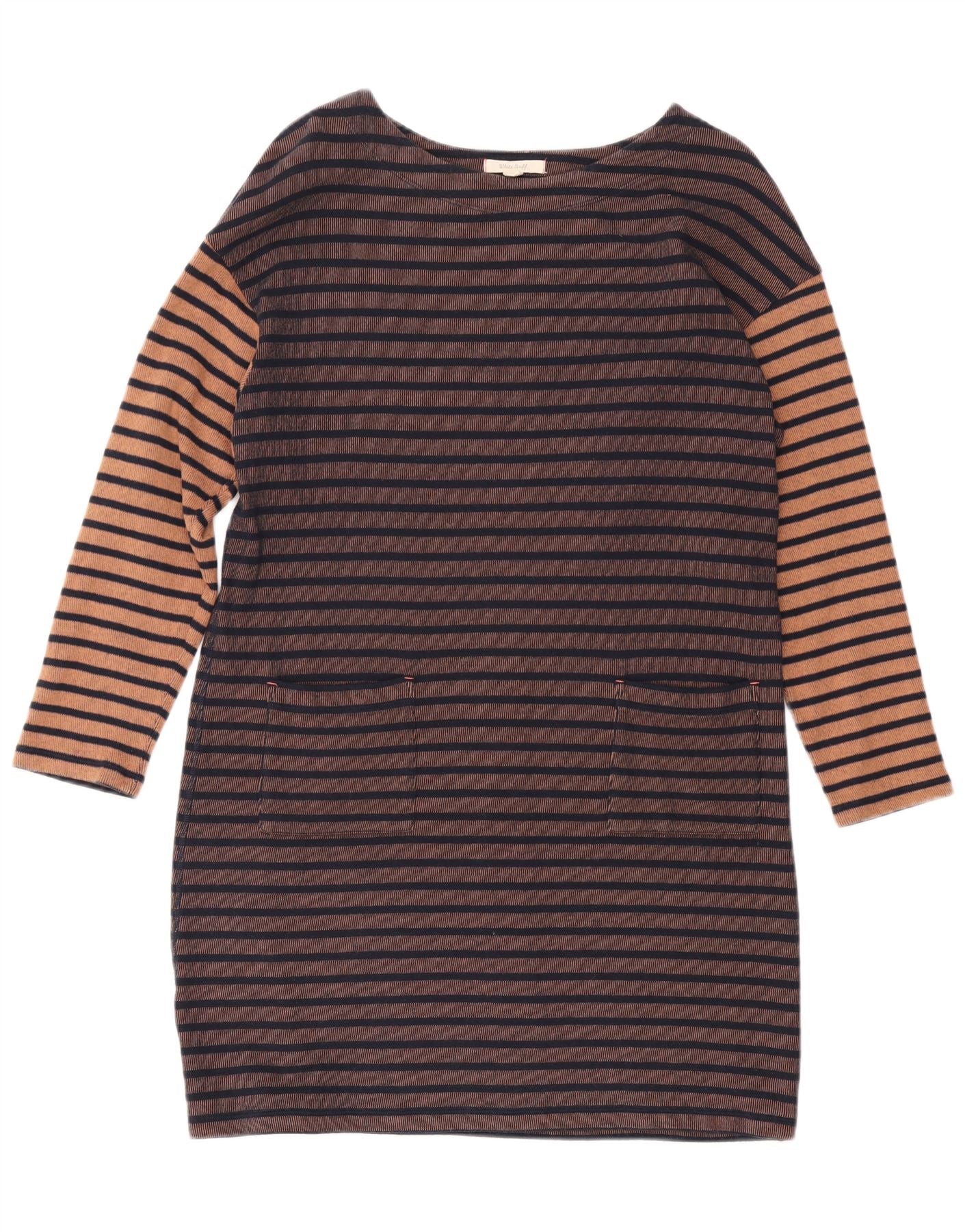 WHITE STUFF Vestido tubo de manga larga para mujer UK 44 Grande Marrón Rayas