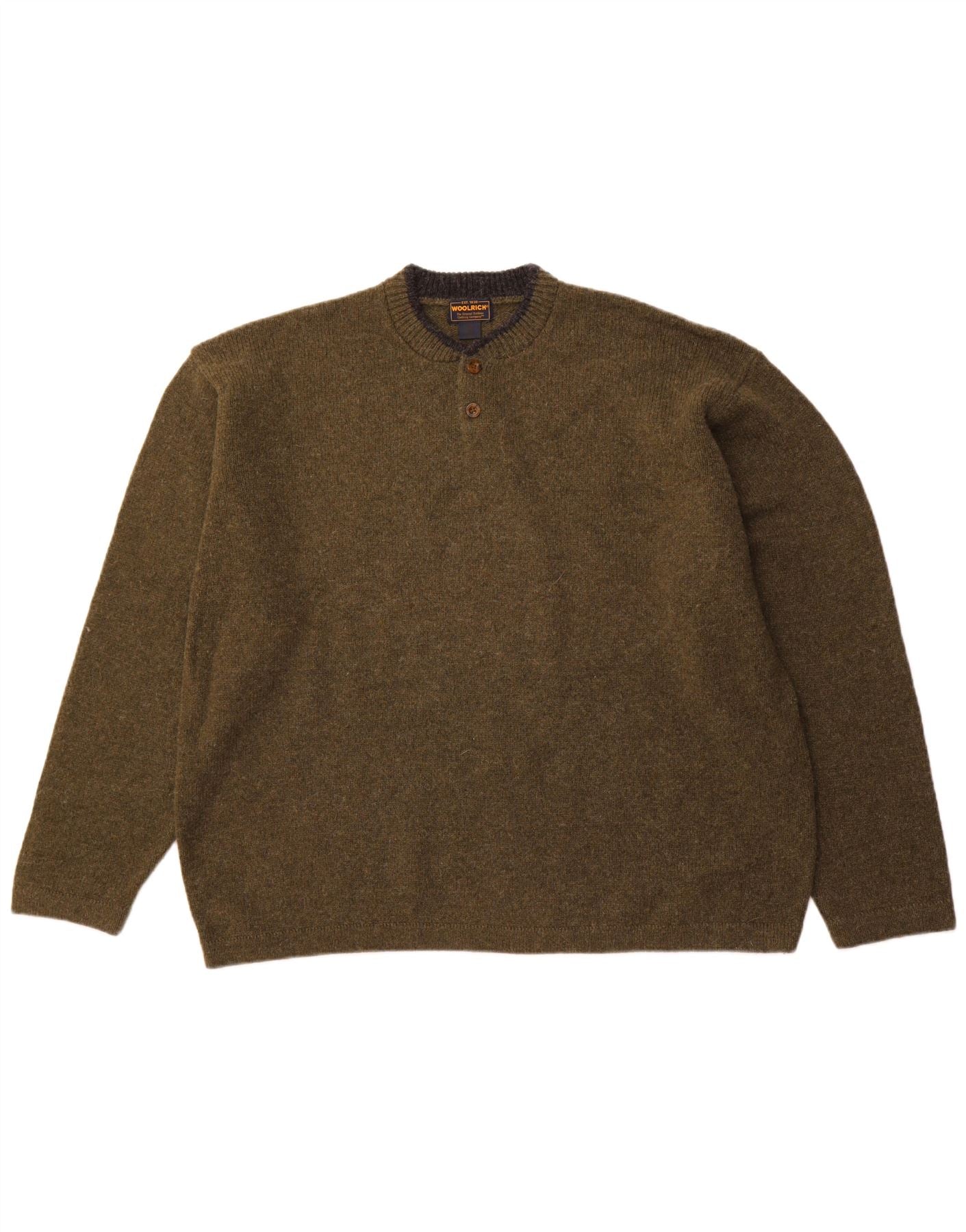 WOOLRICH Suéter tipo jersey con cuello y botones para hombre 2XL Lana caqui