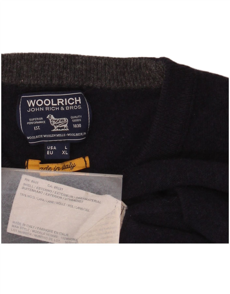 WOOLRICH Jersey de cuello redondo para hombre, suéter grande de lana azul marino