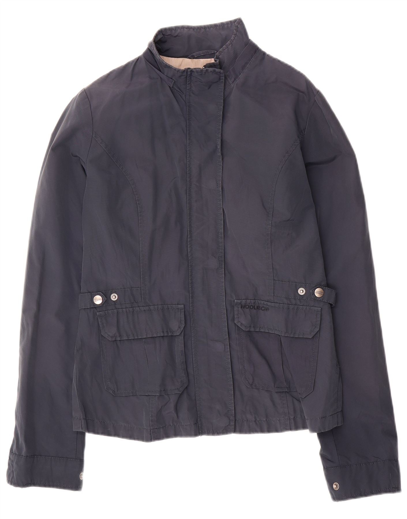 - Descripción de IA: Esta chaqueta utilitaria para mujer de Woolrich está confeccionada con algodón tejido duradero de color azul marino y tiene un acabado suave. Presenta un escote con cuello clásico y un cierre de cremallera completo. Las mangas largas y el corte regular garantizan una comodidad de uso. Los bolsillos delanteros con solapa y detalles de botones añaden un estilo práctico. El diseño ofrece una silueta versátil y atemporal, perfecta para la elegancia británica cotidiana.