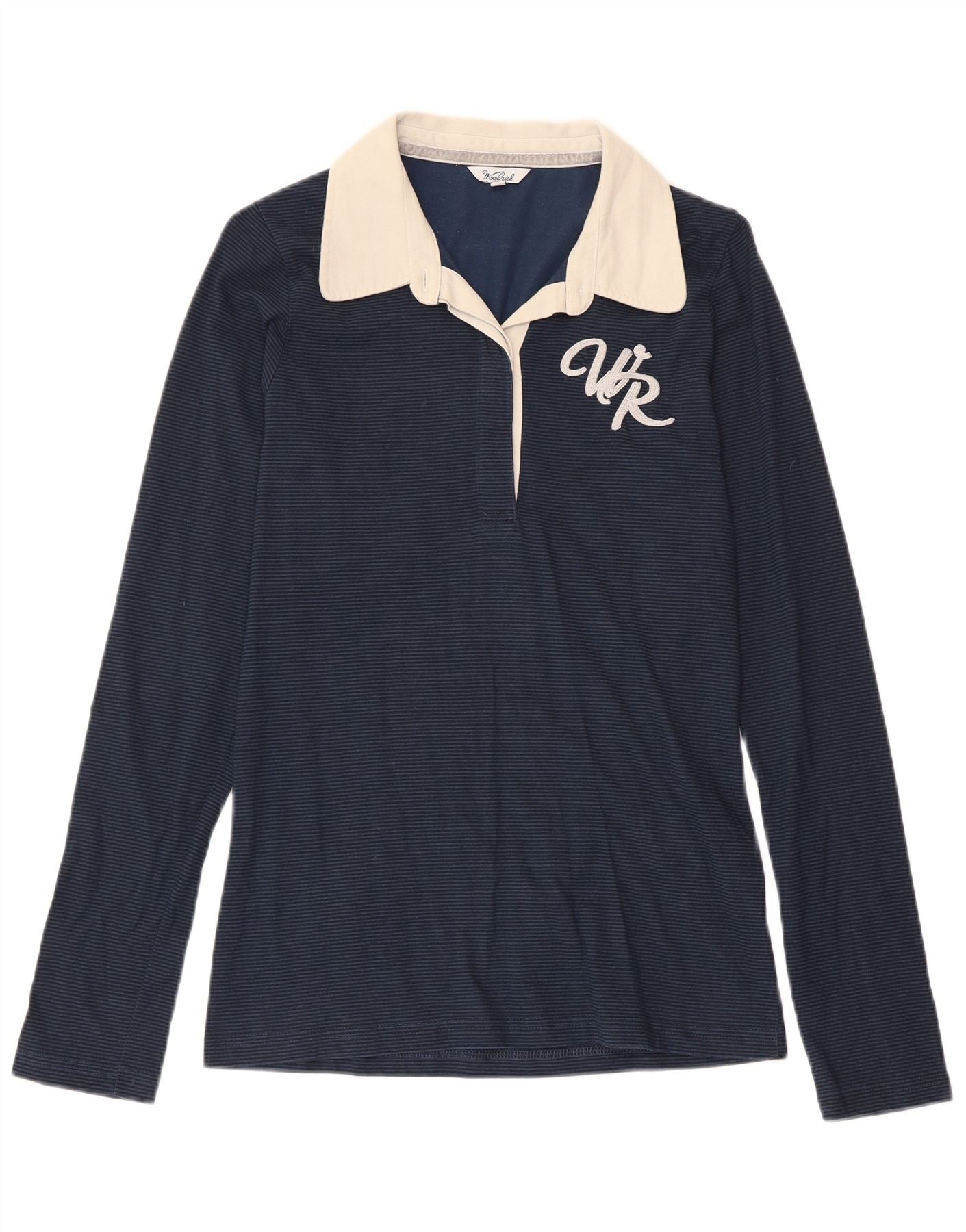 Woolrich Polo de rugby gráfico para mujer UK 12 Medium Azul marino Algodón