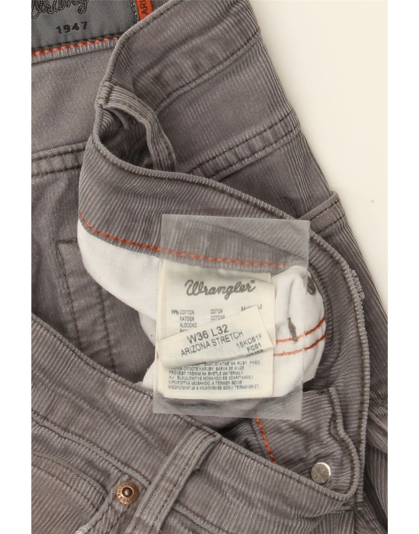 WRANGLER Pantalones de pana rectos elásticos Arizona para hombre W36 L32 Gris