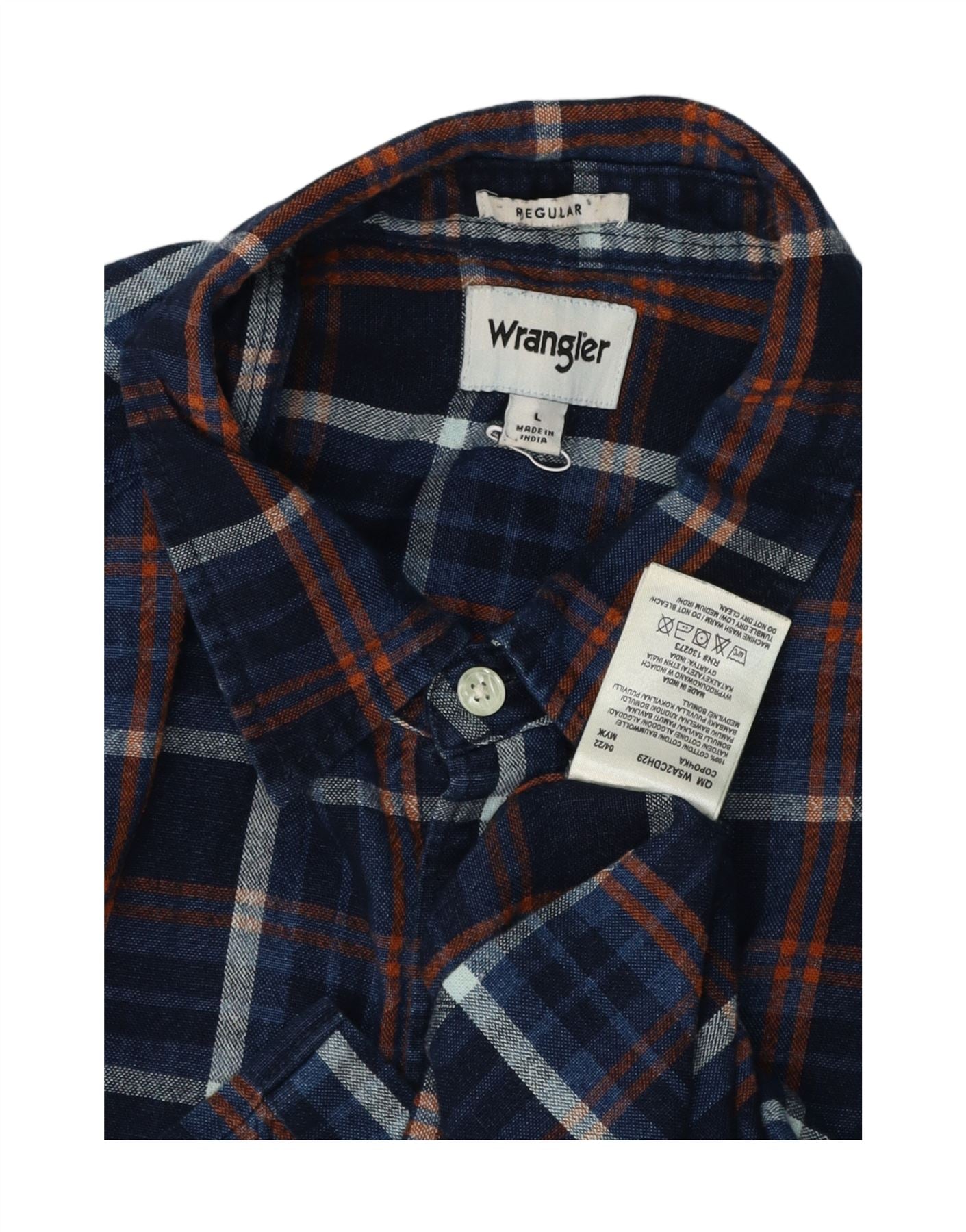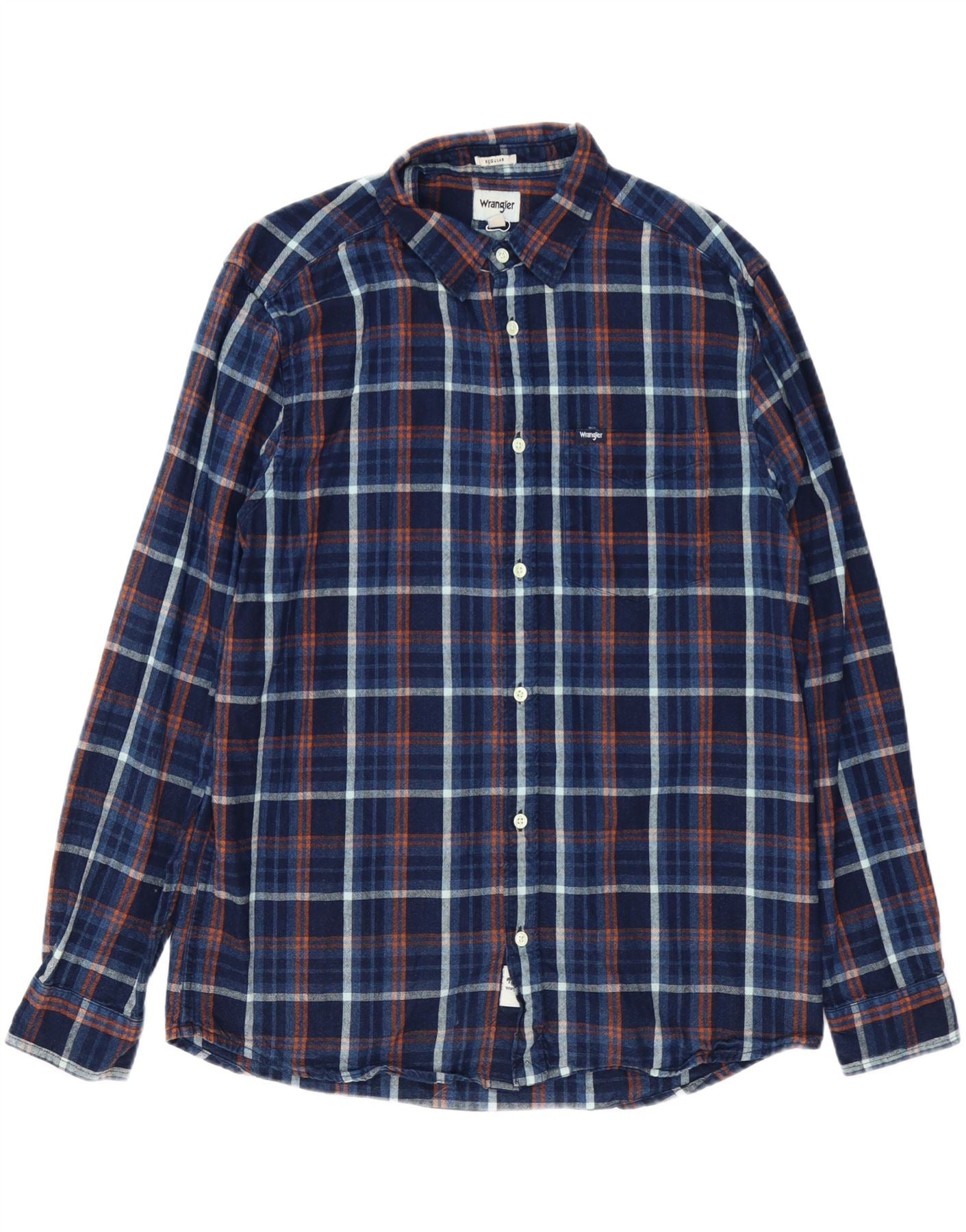 WRANGLER Camisa de franela de ajuste regular para hombre, tamaño grande, algodón a cuadros azul marino