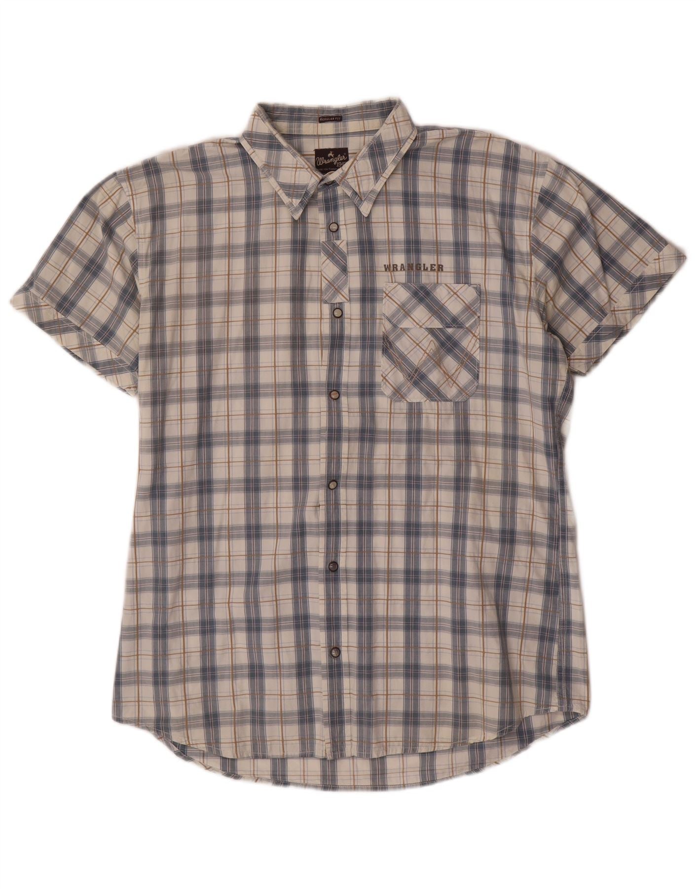 WRANGLER Camisa de Manga Corta Regular Fit para Hombre XL Algodón a Cuadros Gris