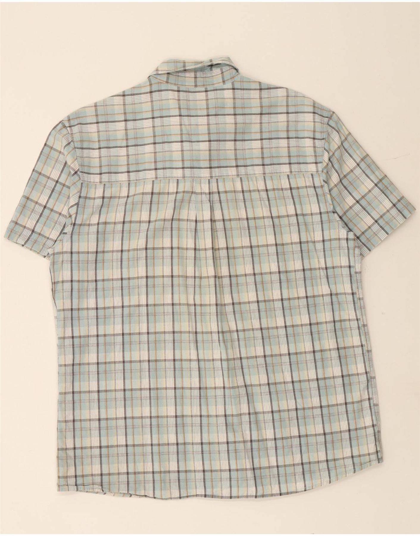 WRANGLER Camisa de manga corta para hombre de algodón a cuadros azules grandes