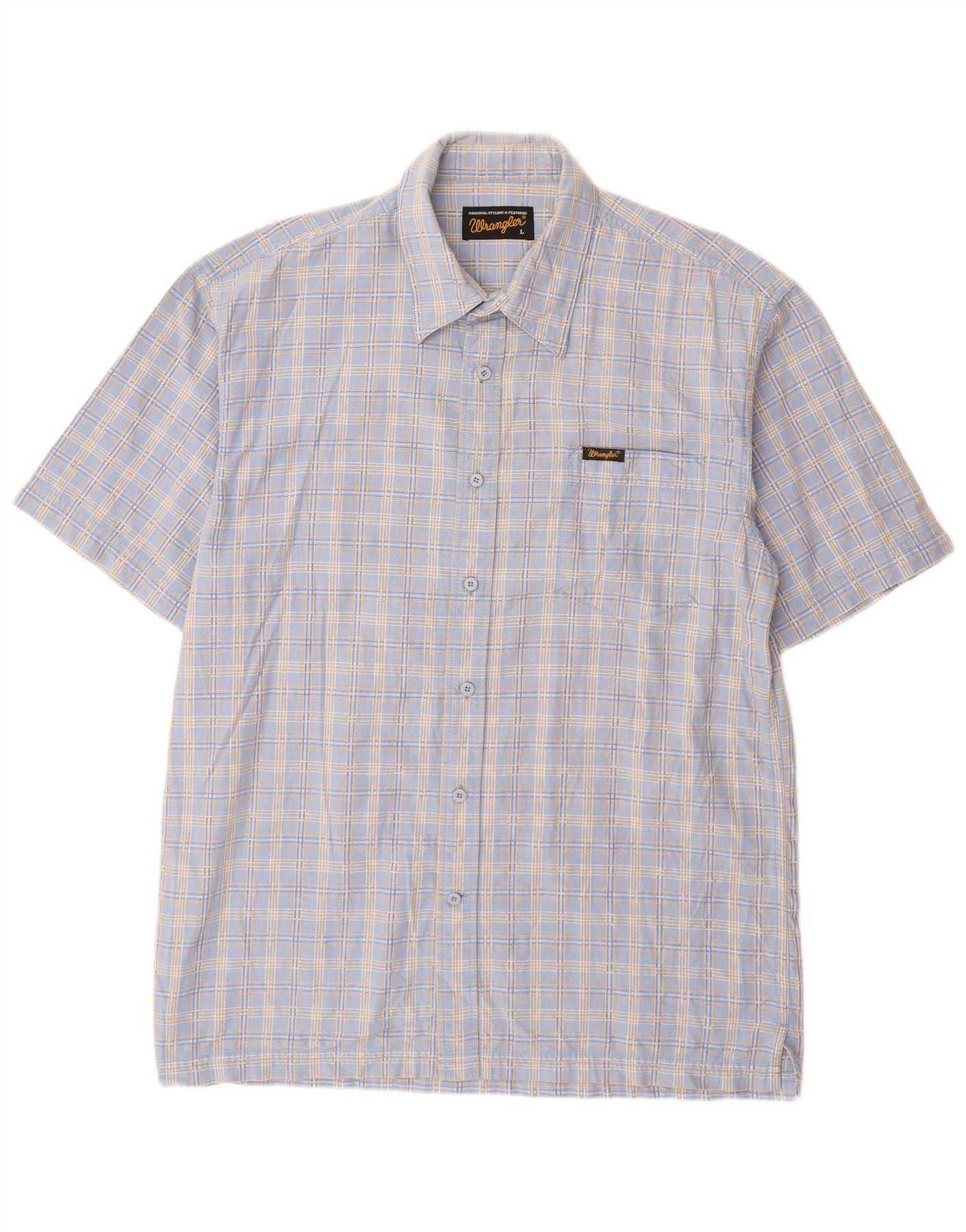 WRANGLER Camisa de manga corta para hombre de algodón a cuadros azules grandes