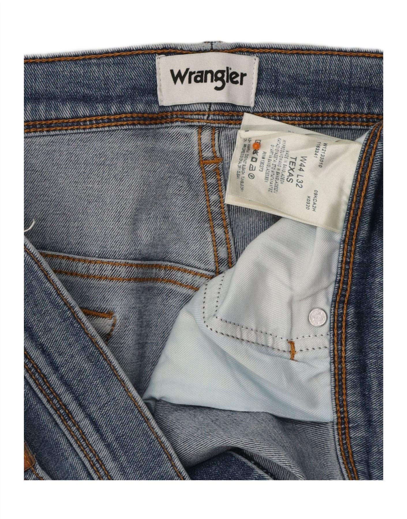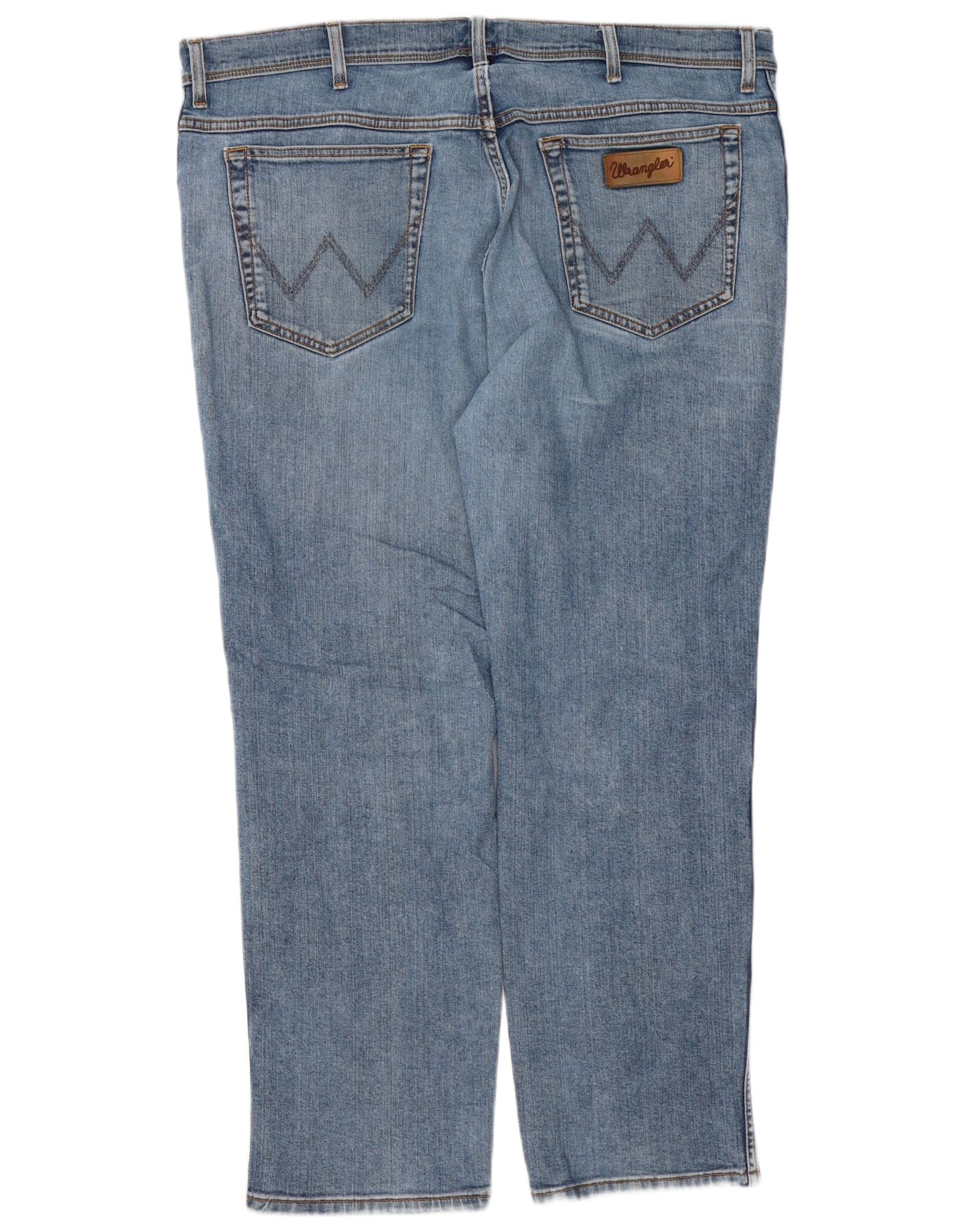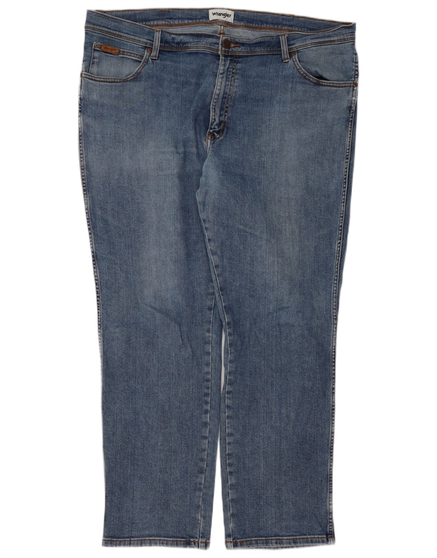 - AI Description: This Wrangler men's straight jeans are crafted from durable blue denim, a comfortable blend of cotton, polyester, and elastane. They feature a classic straight leg and a regular fit, offering timeless appeal. The button closure provides a secure front. Practical pockets enhance functionality. A subtle brand logo adds a signature touch. This classic Texas model ensures both comfort and enduring style.