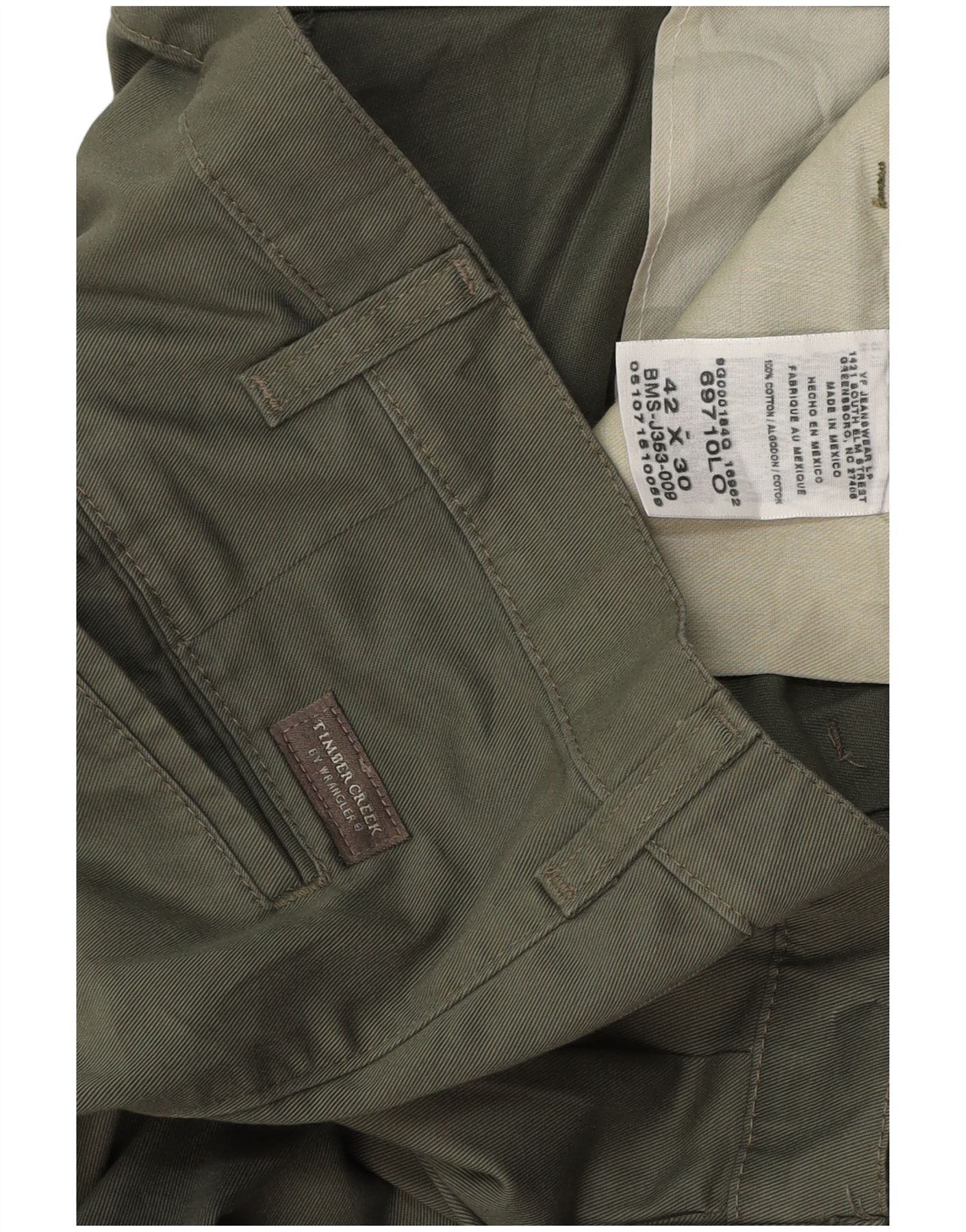 WRANGLER Pantalones chinos con clavija Timber Creek para hombre W42 L30 Algodón caqui