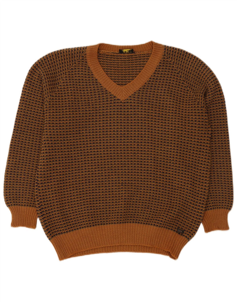 WRANGLER Suéter con cuello en V para mujer UK 18 XL Lana a rayas marrón