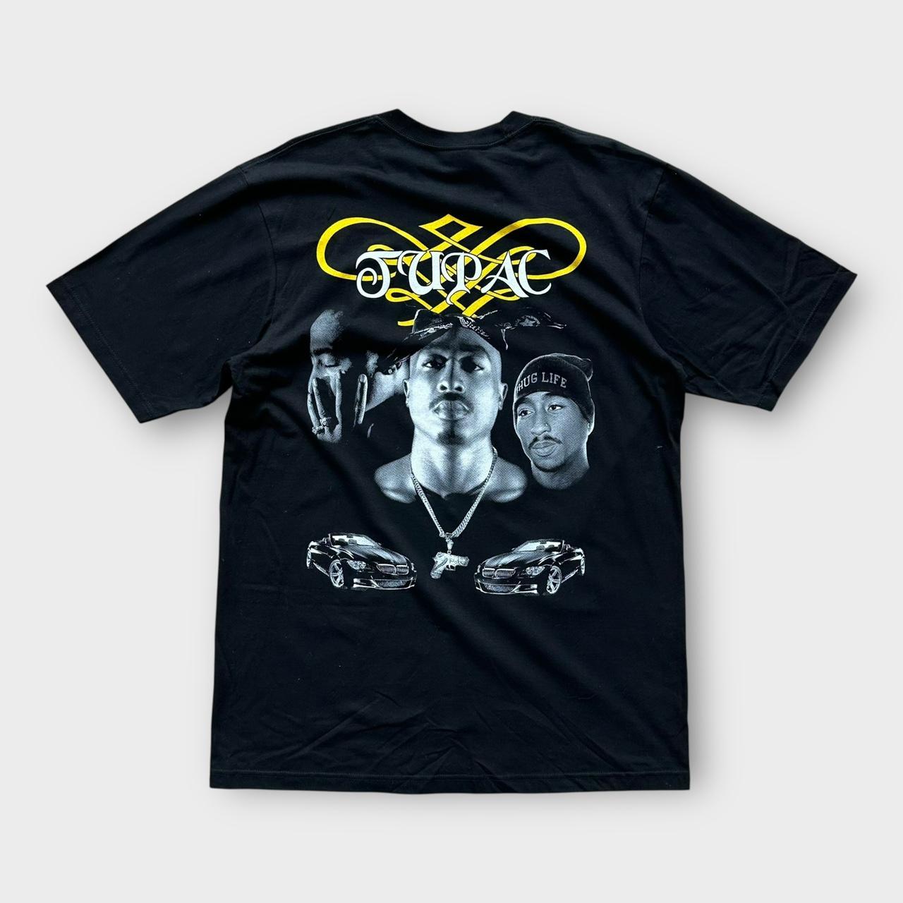 Camiseta con estampado gráfico de Tupac de principios de la década de 2000 en negro con estampado en el pecho y en la parte delantera