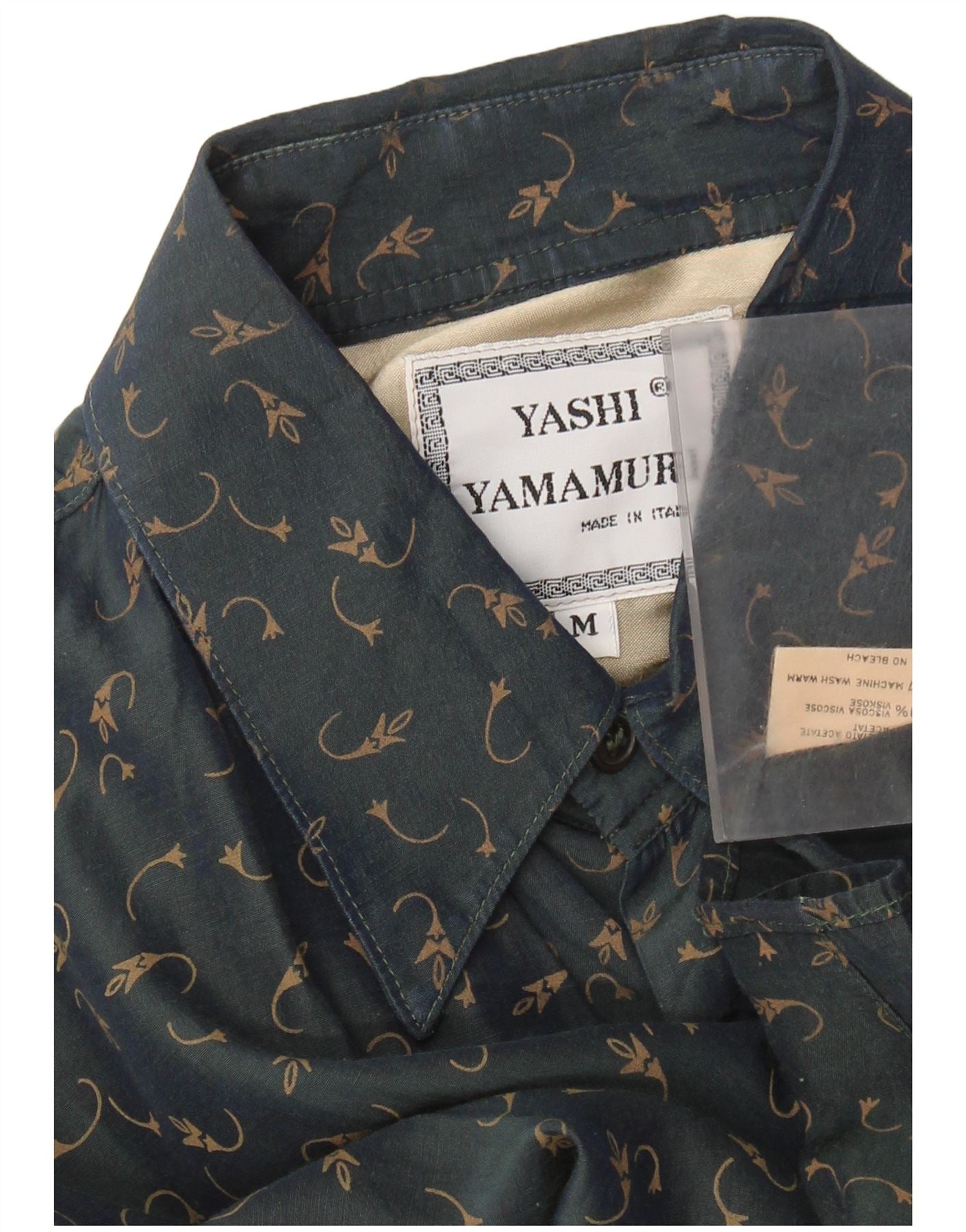 YASHI YAMAMURI Mens Shirt Medium Green Floral Acetate
