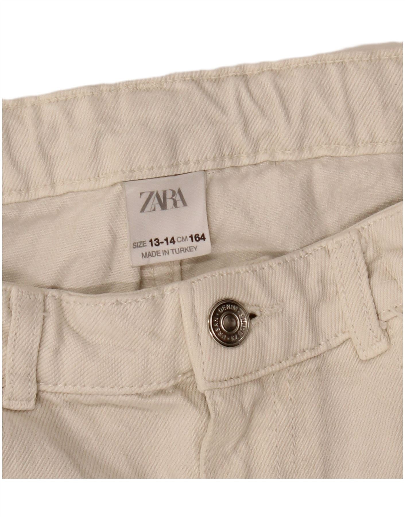ZARA Vaqueros cónicos de cintura alta desgastados para niñas 13-14 años W28 L22 Blanco