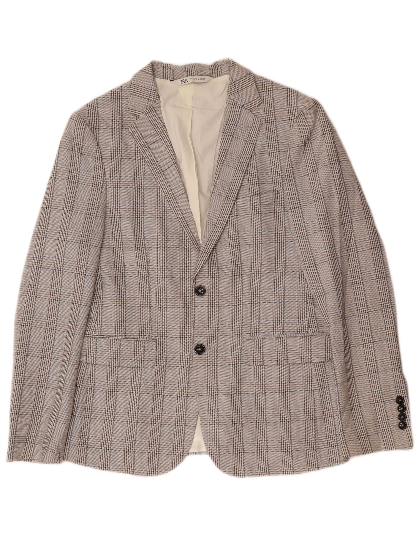 ZARA Chaqueta tipo blazer de 2 botones para hombre EU 48 Poliéster de pata de gallo gris medio