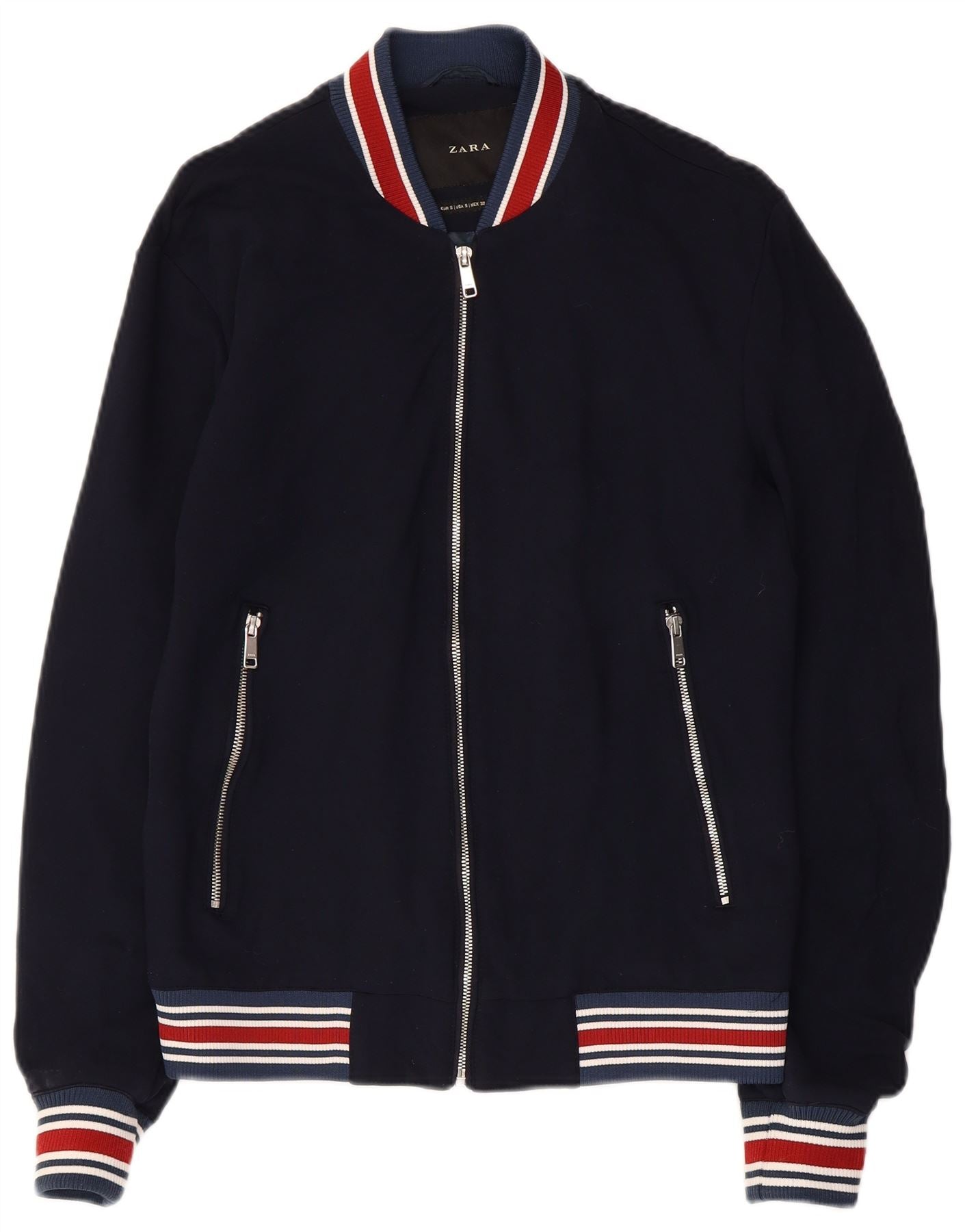ZARA Chaqueta Bomber para Hombre UK 36 Small Azul Marino Viscosa
