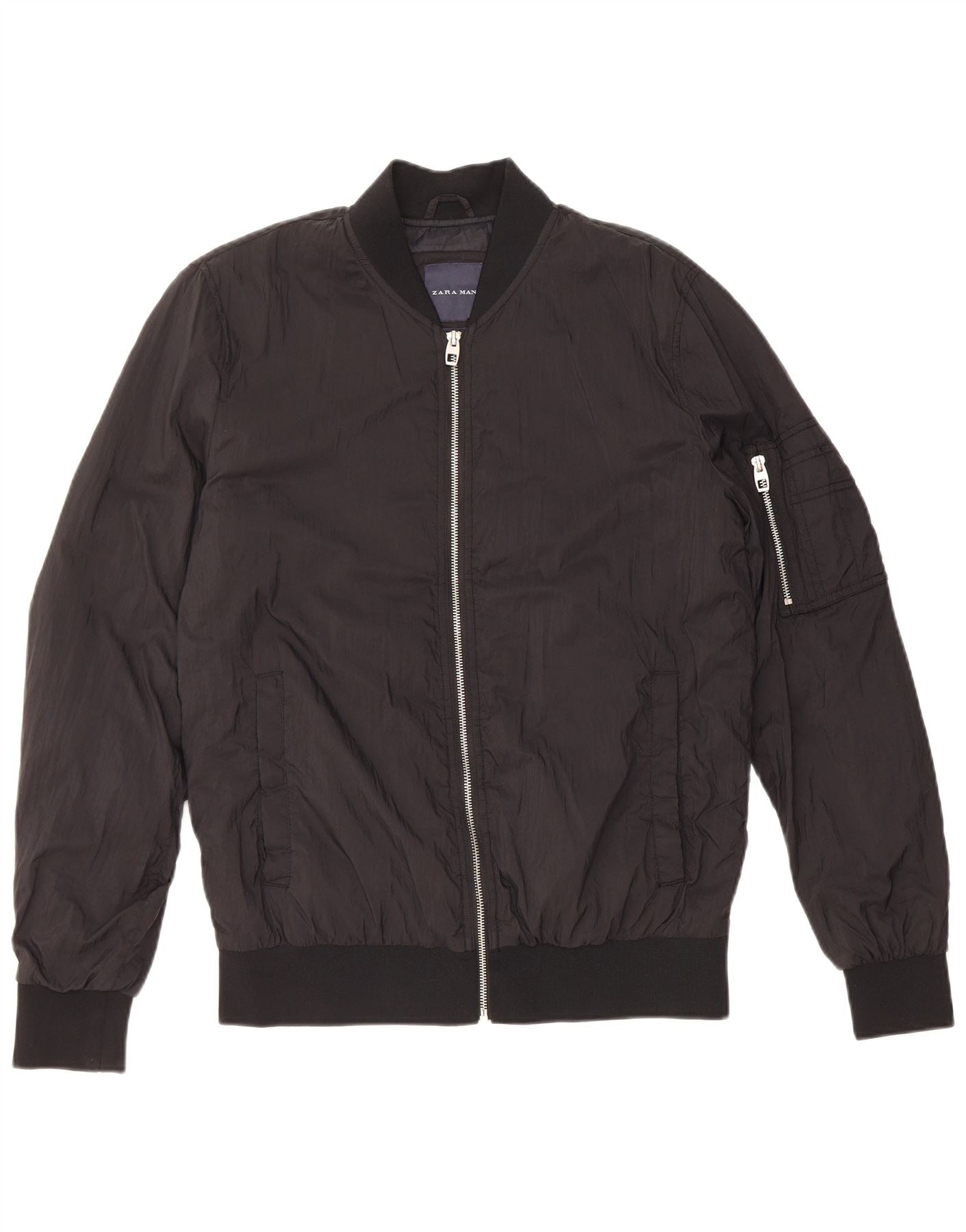 ZARA Chaqueta Bomber Hombre ES 38 Mediana Negro Poliéster