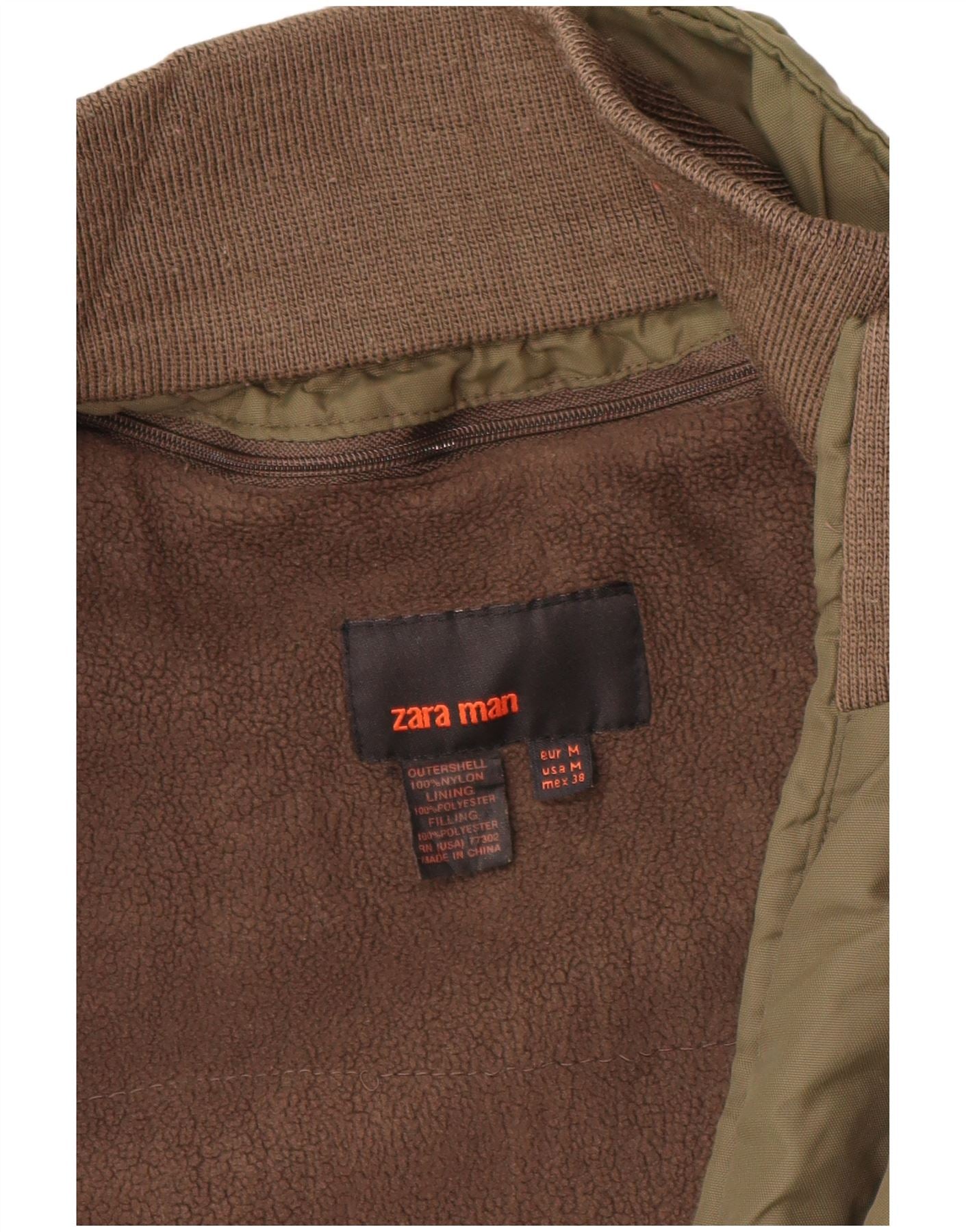ZARA Chaqueta Bomber Hombre UK 38 Medium Caqui Nylon