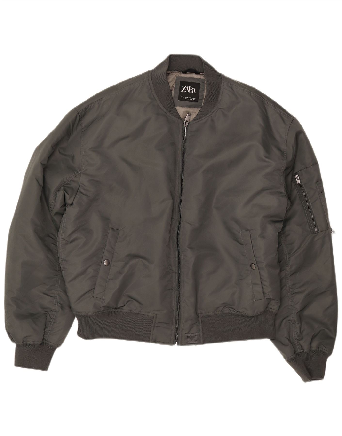 ZARA Chaqueta Bomber Hombre UK 40 Grande Poliéster Gris