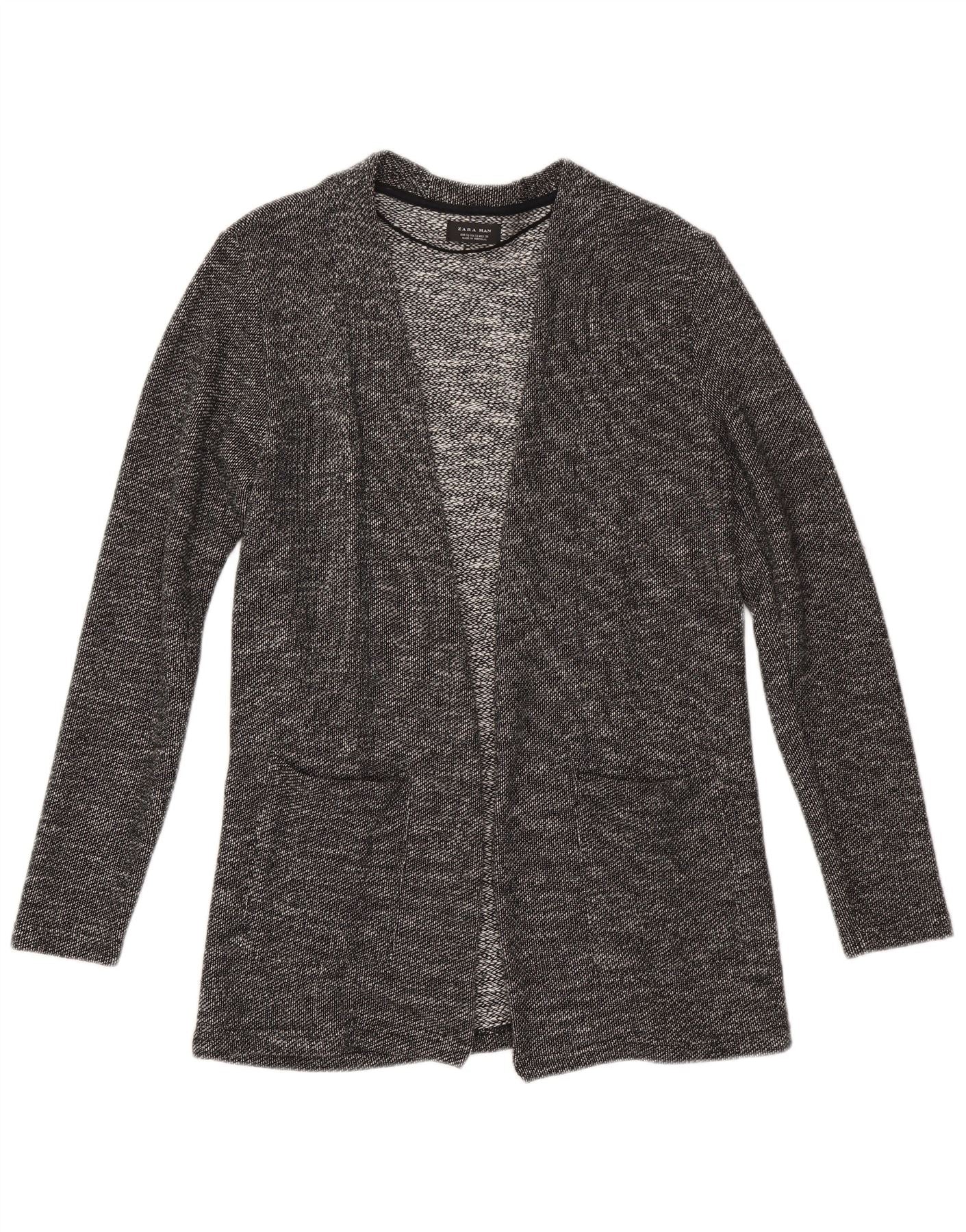 Zara Hombre Cárdigan Suéter Pequeño Algodón Moteado Negro