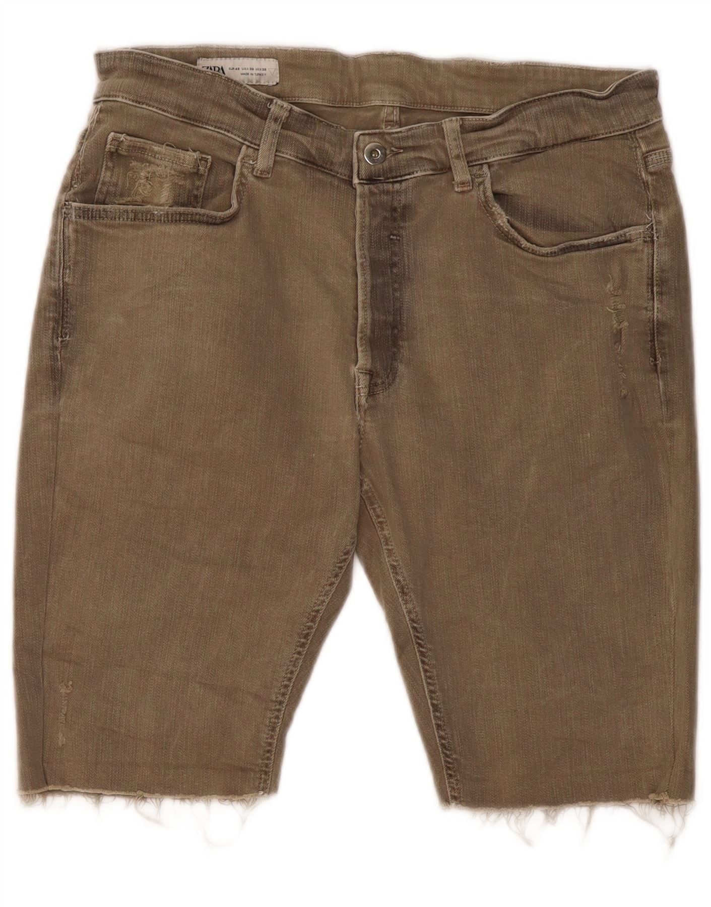 ZARA Pantalones cortos de mezclilla desgastados para hombre EU 46 XL W36 Caqui