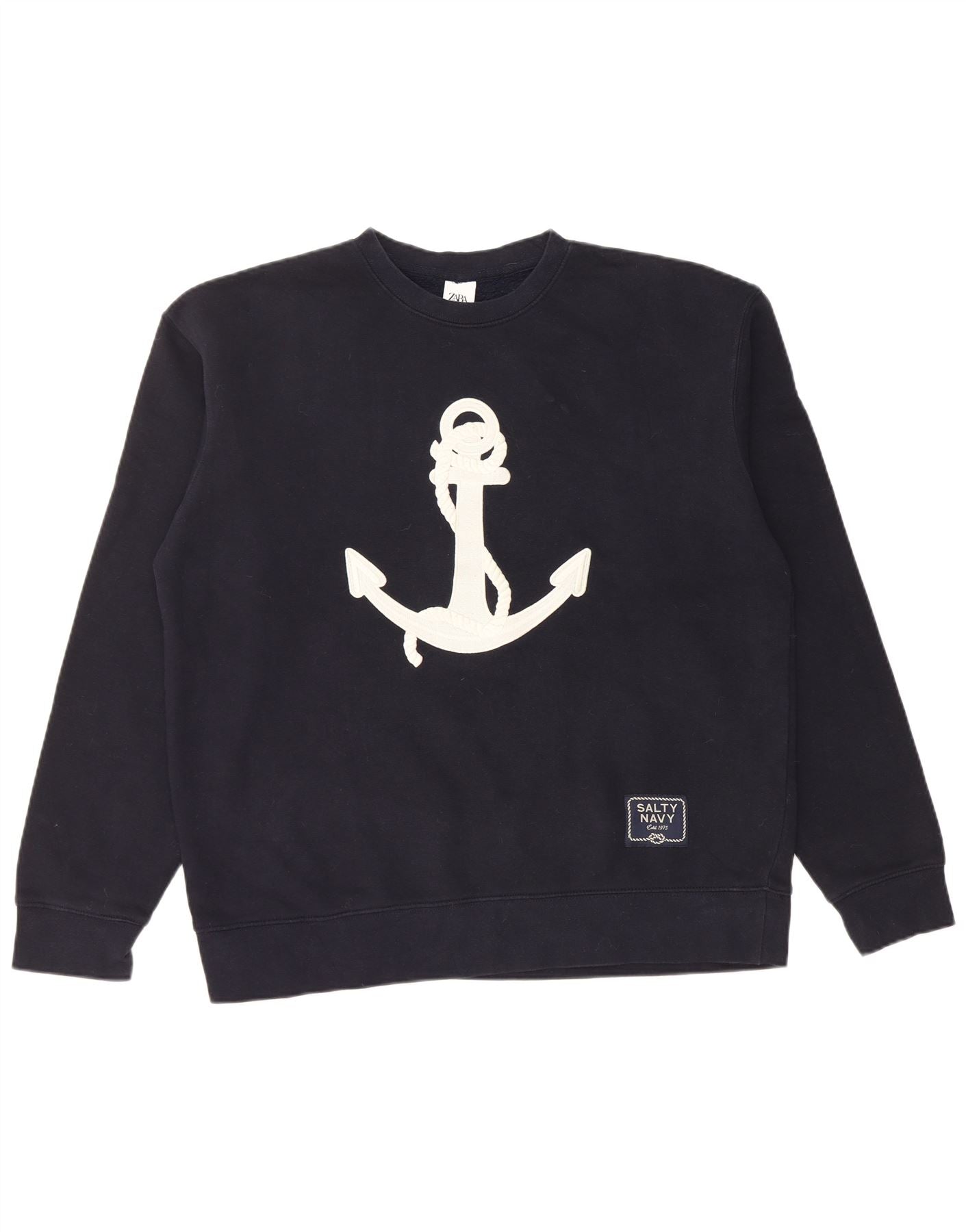 Zara Hombre Sudadera Estampada Jumper Large Azul Marino Algodón Náutico