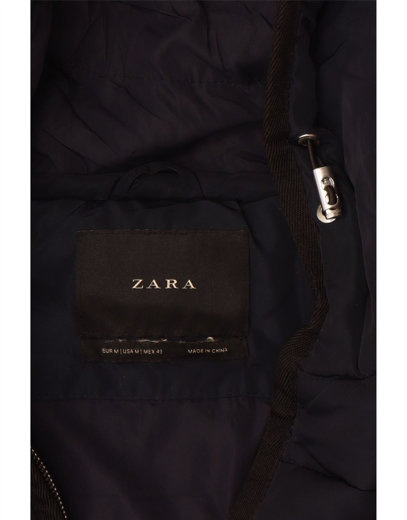 ZARA Hombre Chaqueta Acolchada Con Capucha ES 38 Medium Azul Marino Colorblock