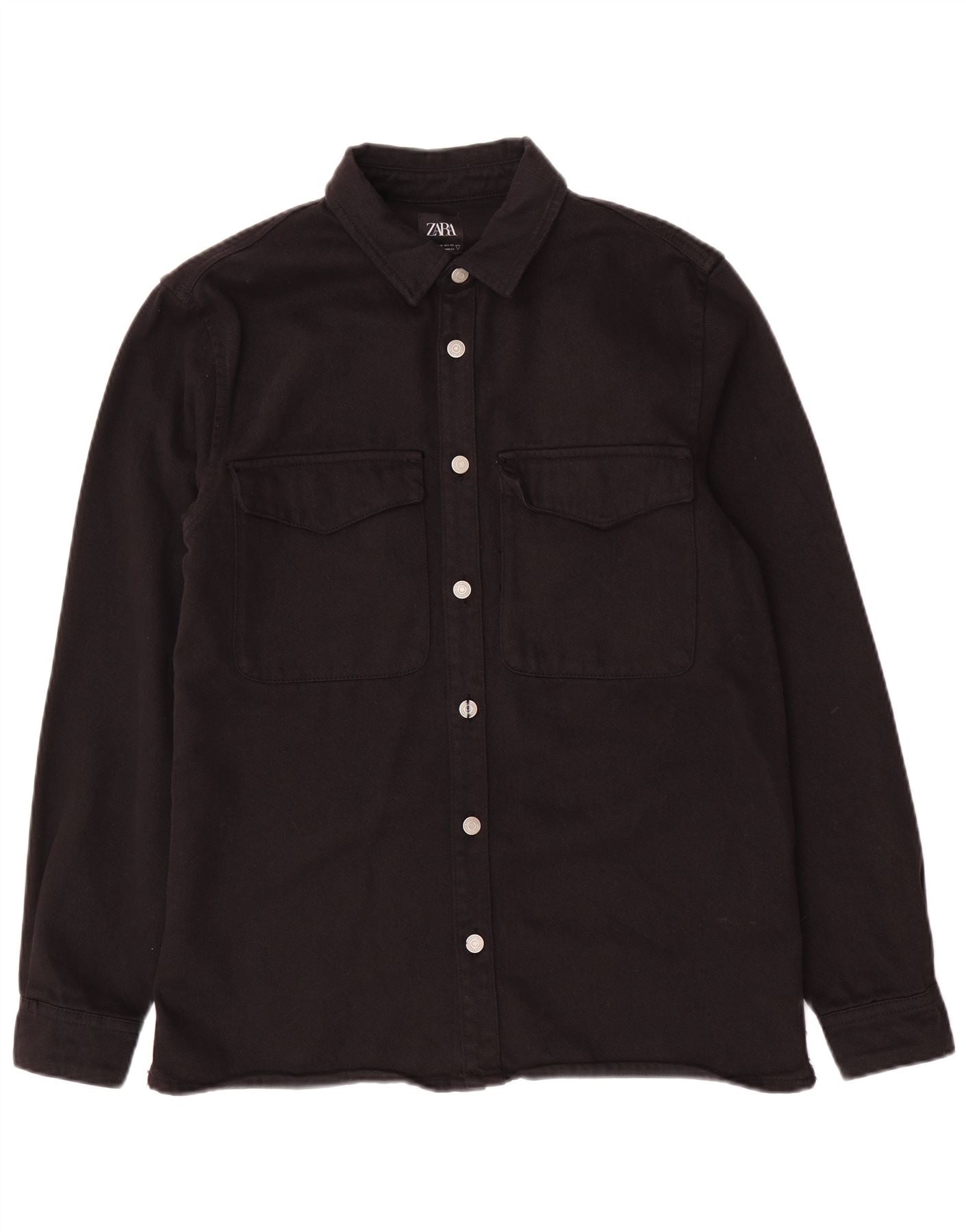 - Descripción de IA: Esta camisa vaquera para hombre de Zara está confeccionada con denim 100 % algodón negro. Presenta escote con cuello y manga larga. El corte relajado de sobrecamisa ofrece una cómoda combinación de capas. Un frente completo con botones y puños abotonados brindan un detalle clásico. Dos bolsillos en el pecho añaden utilidad práctica. Esta prenda versátil combina un estilo resistente con la comodidad diaria, perfecta para un look casual.