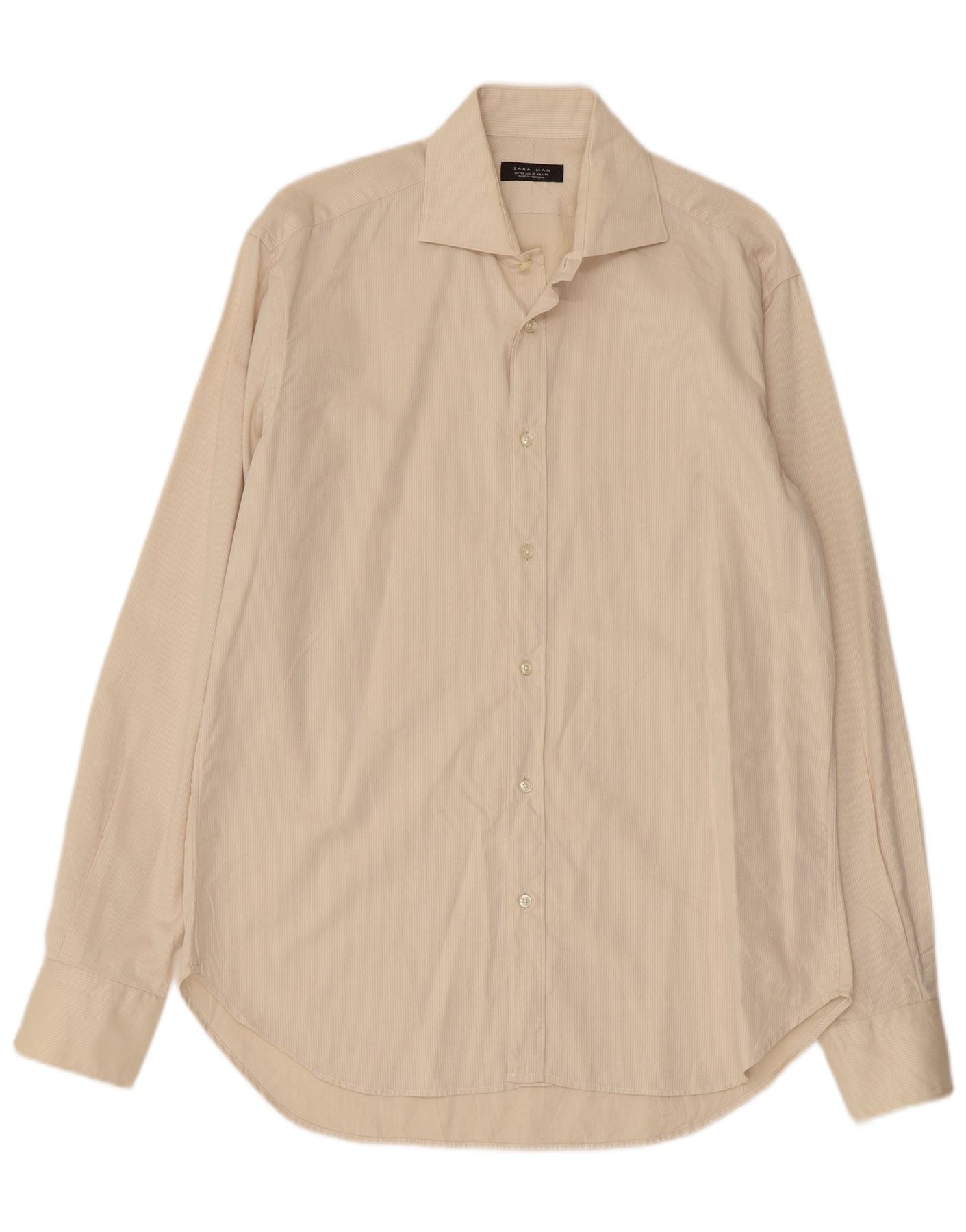 Camisa ZARA Hombre Talla 42 Grande Algodón Rayas Beige