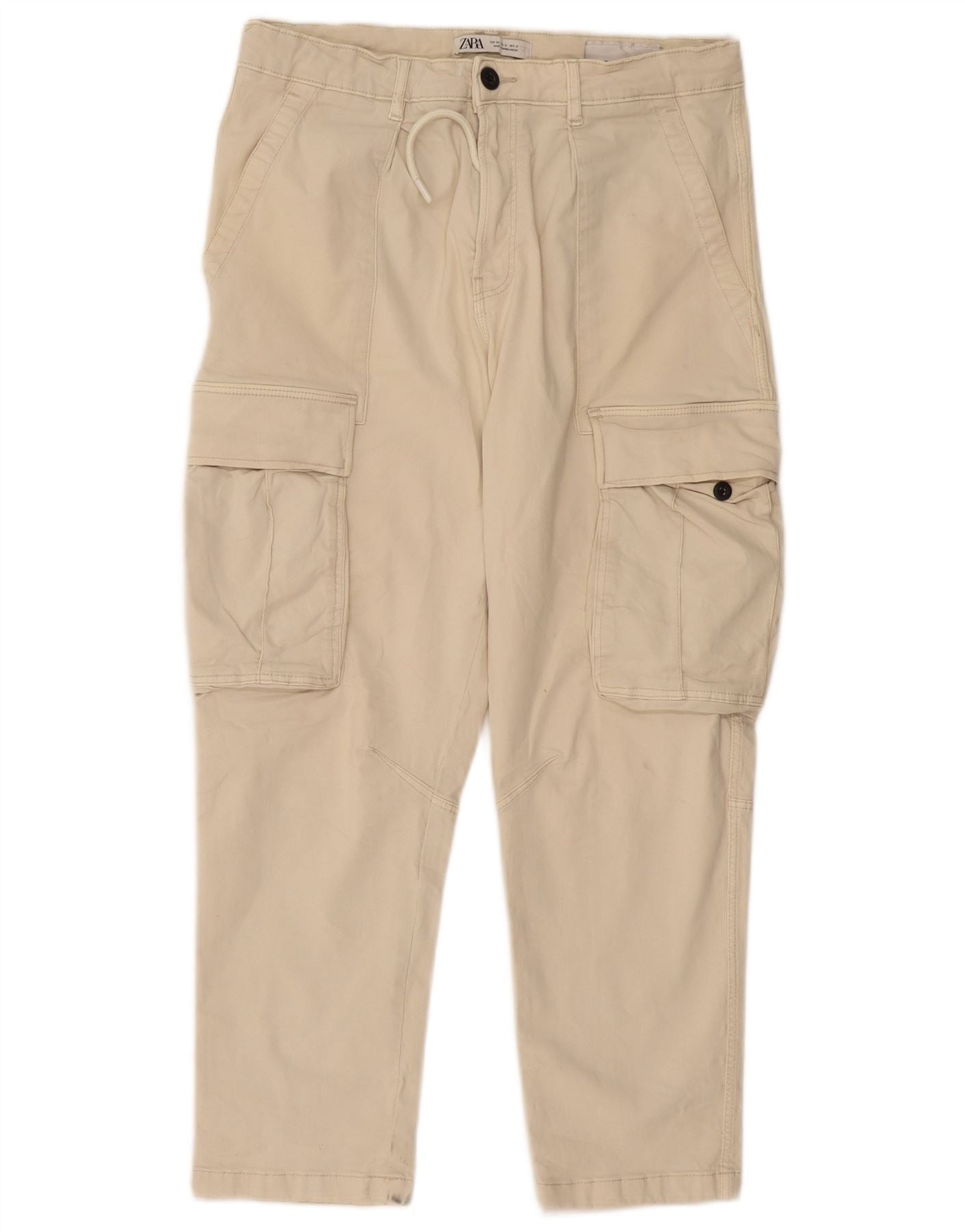 ZARA Hombre Pantalón Cargo Recto EU 40 Medium W31 L27 Algodón Beige