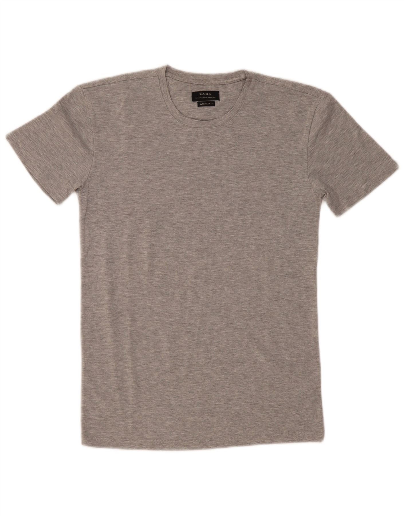 Zara Hombre Camiseta Super Slim Fit Top Pequeño Gris Moteado