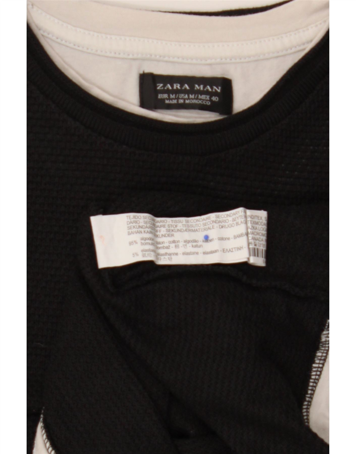 ZARA Hombre Camiseta Top Medium Negro Algodón