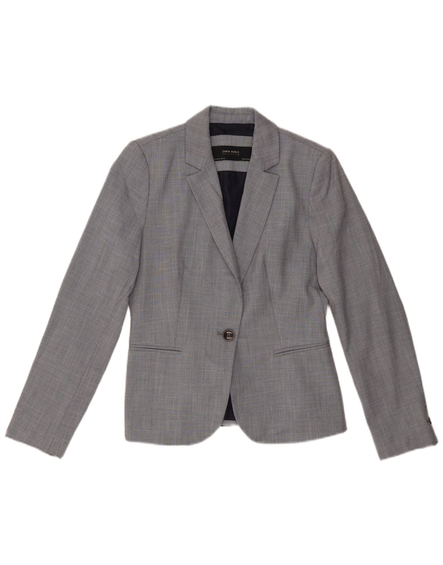 ZARA Chaqueta Blazer De 1 Botón Mujer EU 36 XS Gris Chevron Poliéster