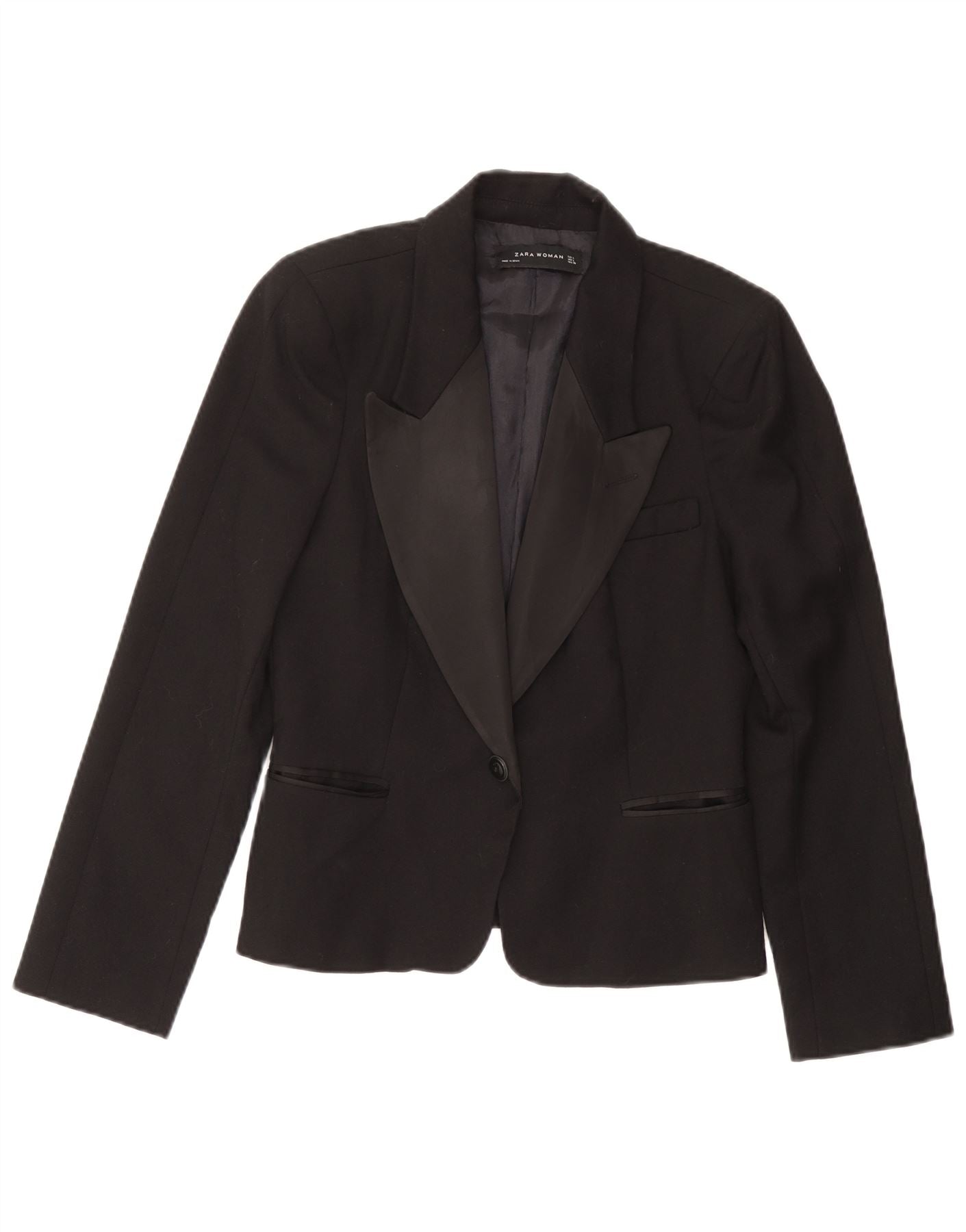 Zara Chaqueta Blazer De 1 Botón Para Mujer UK 46 Grande Lana Negra