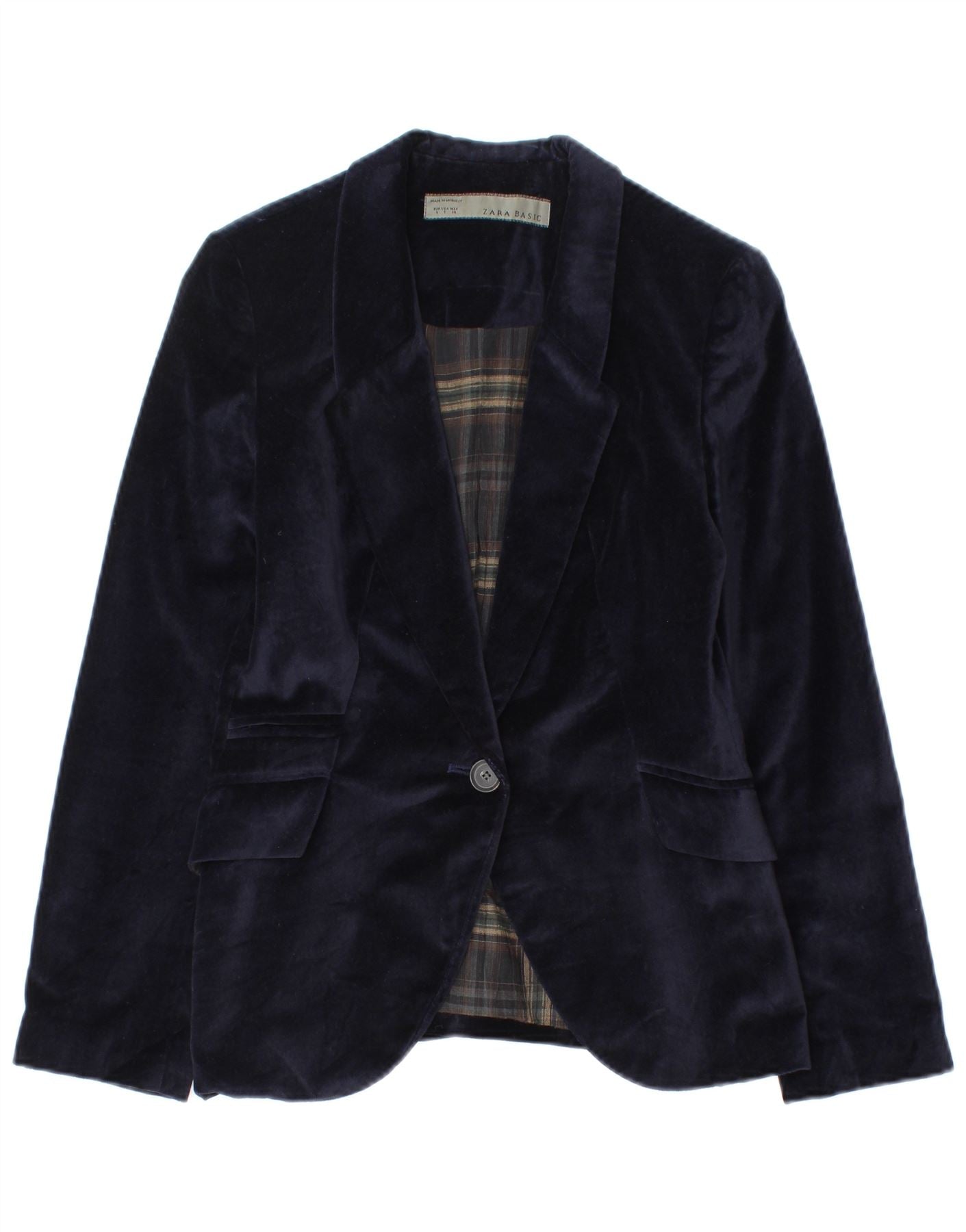 Zara Chaqueta Blazer De Terciopelo Con 1 Botón Para Mujer UK 8 Small Azul Marino Algodón