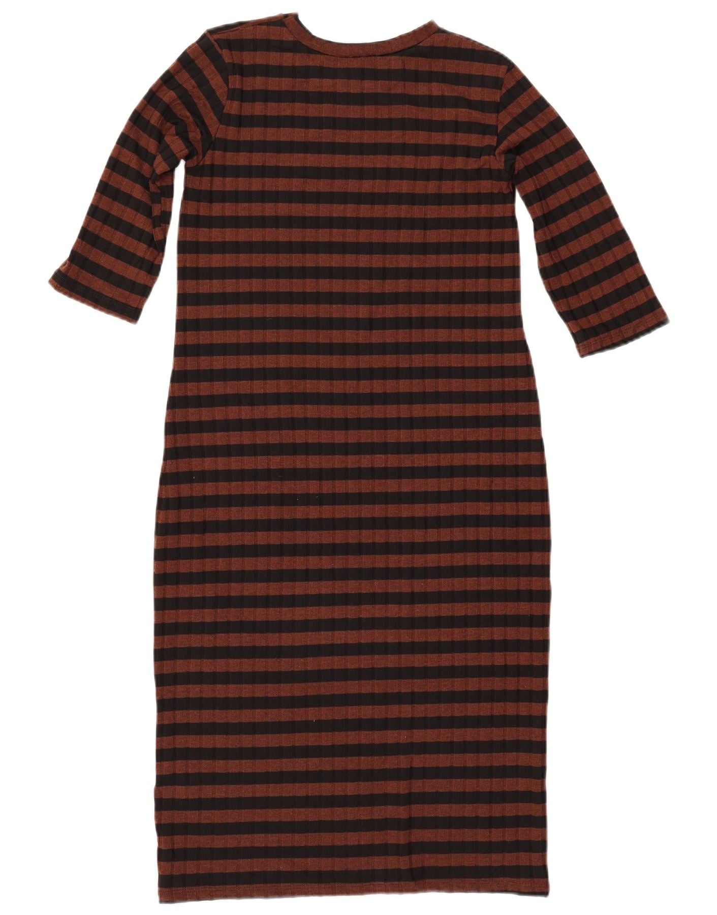 ZARA Vestido ajustado de manga 3/4 para mujer UK 40 Small Marrón Poliéster a rayas