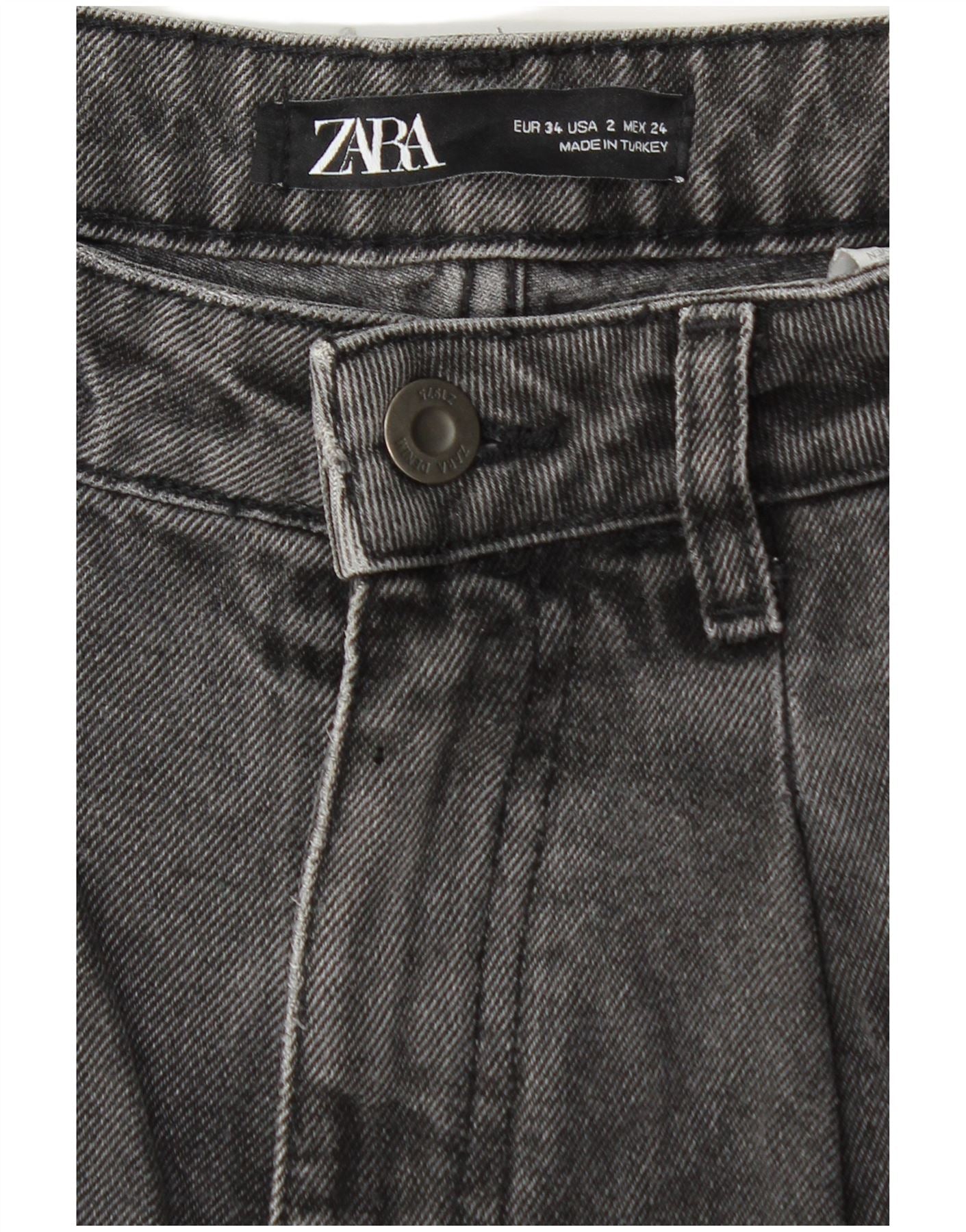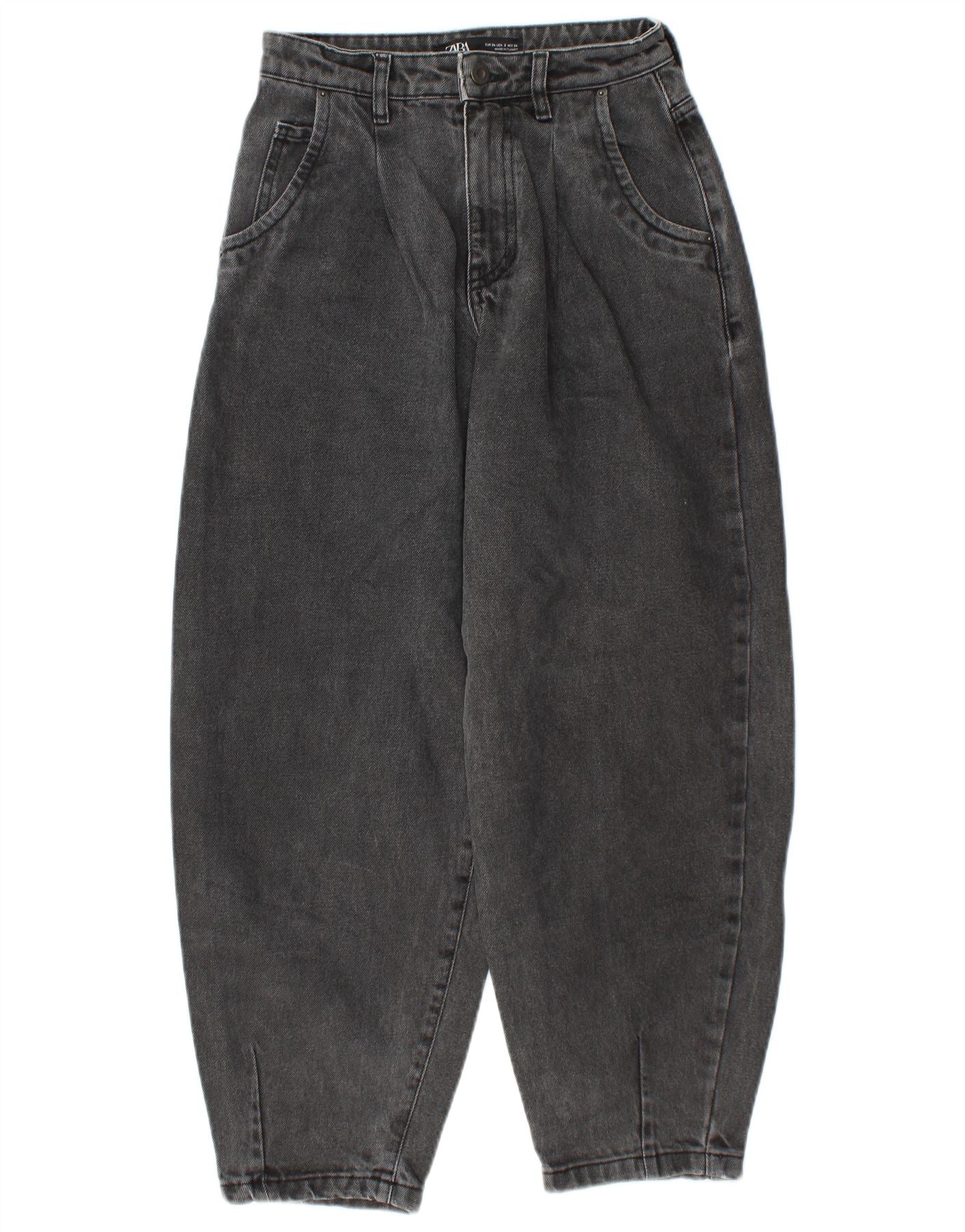 ZARA Vaqueros de cintura alta con corte globo para mujer EU 34 2XS W24 L25 Gris
